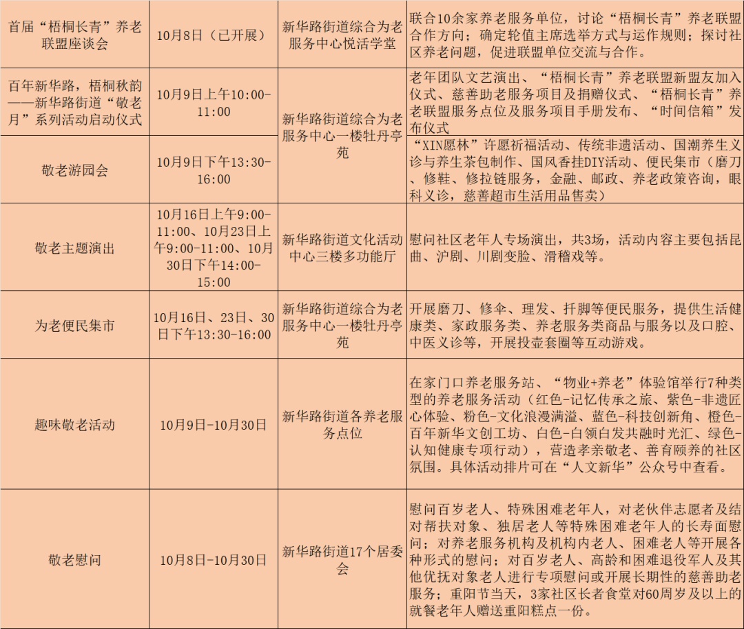 敬老游园会、主题演出、便民集市……本月,在新华路街道各社区为老服务点位,敬老活动丰富多彩!