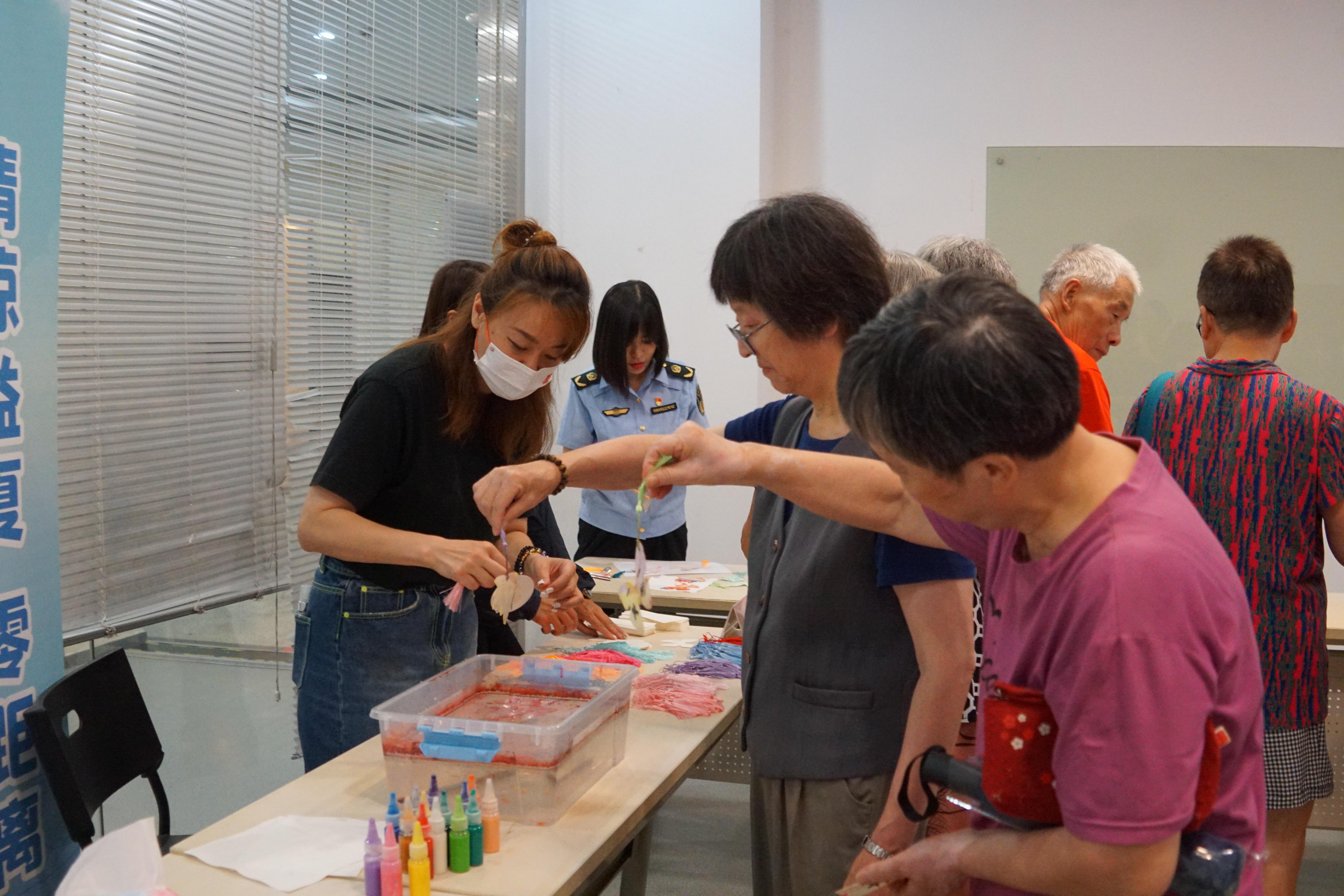 活动现场气氛热烈,居民们围坐一堂,在居委老师的悉心指导下,亲身领略了非遗漆画的独特韵味。从精心挑选材料到细致调色,每一步都充满了创意与热情。五彩斑斓的漆画书签在居民们的手中逐渐成形,化作一件件精美的艺术品,不仅展现了非遗文化的独特魅力,更激发了大家对传统文化的浓厚兴趣与热爱。