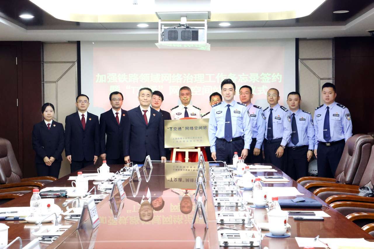 为共建交通领域清朗网络空间,10月8日,上海铁路运输检察院(以下简称“上海铁检院”)与上海铁路公安局上海公安处(以下简称“上铁公安处”)联合成立的“T交通”网络空间站正式挂牌成立,双方就加强铁路领域网络治理工作签署备忘录。