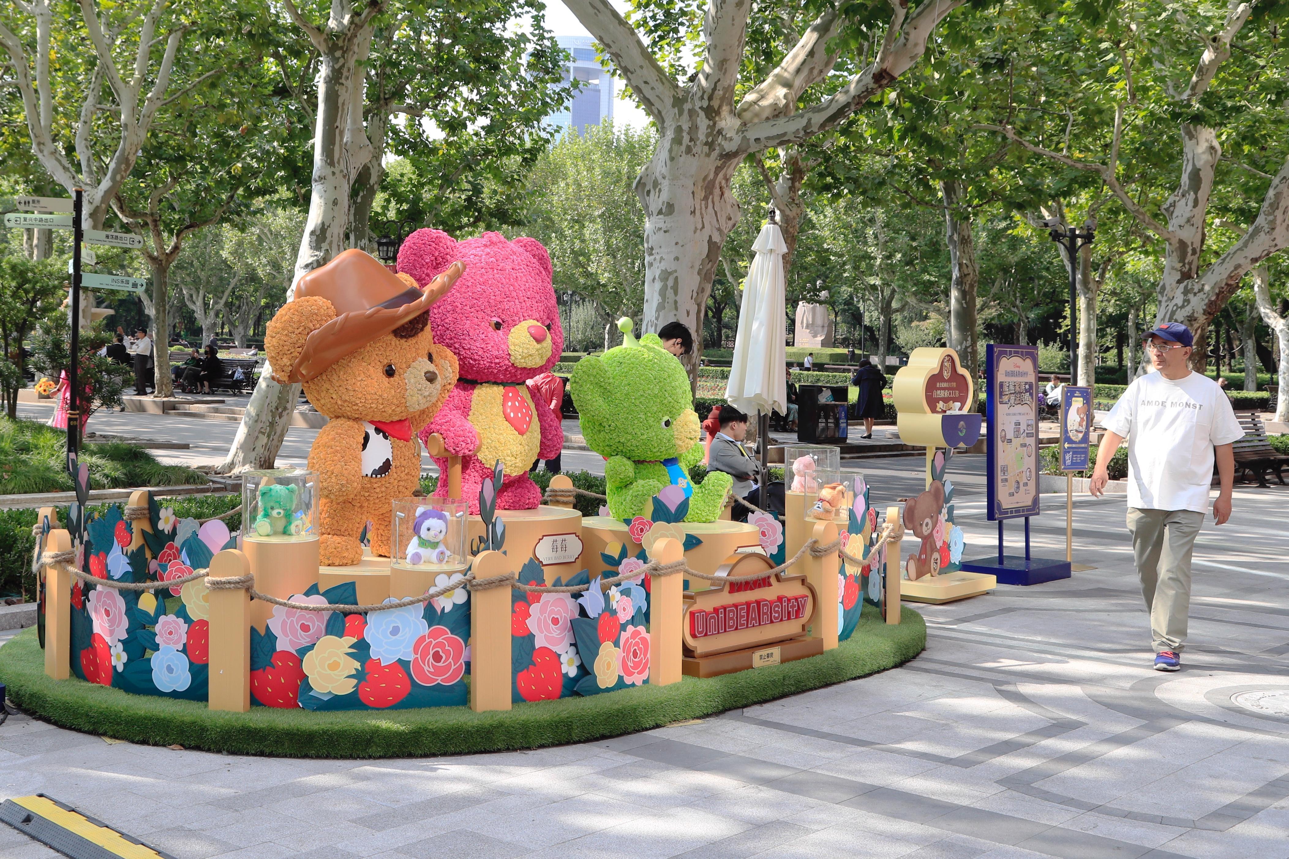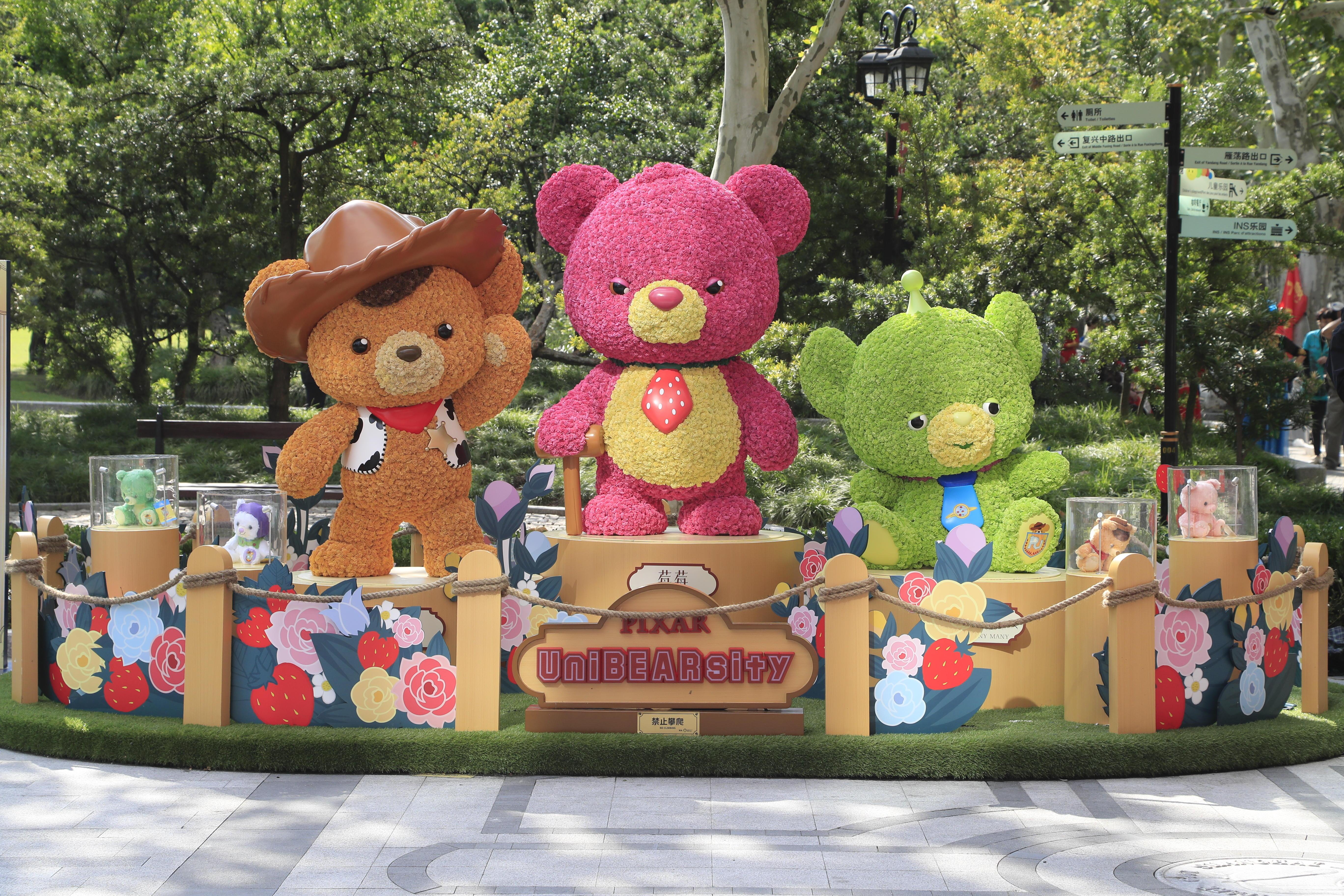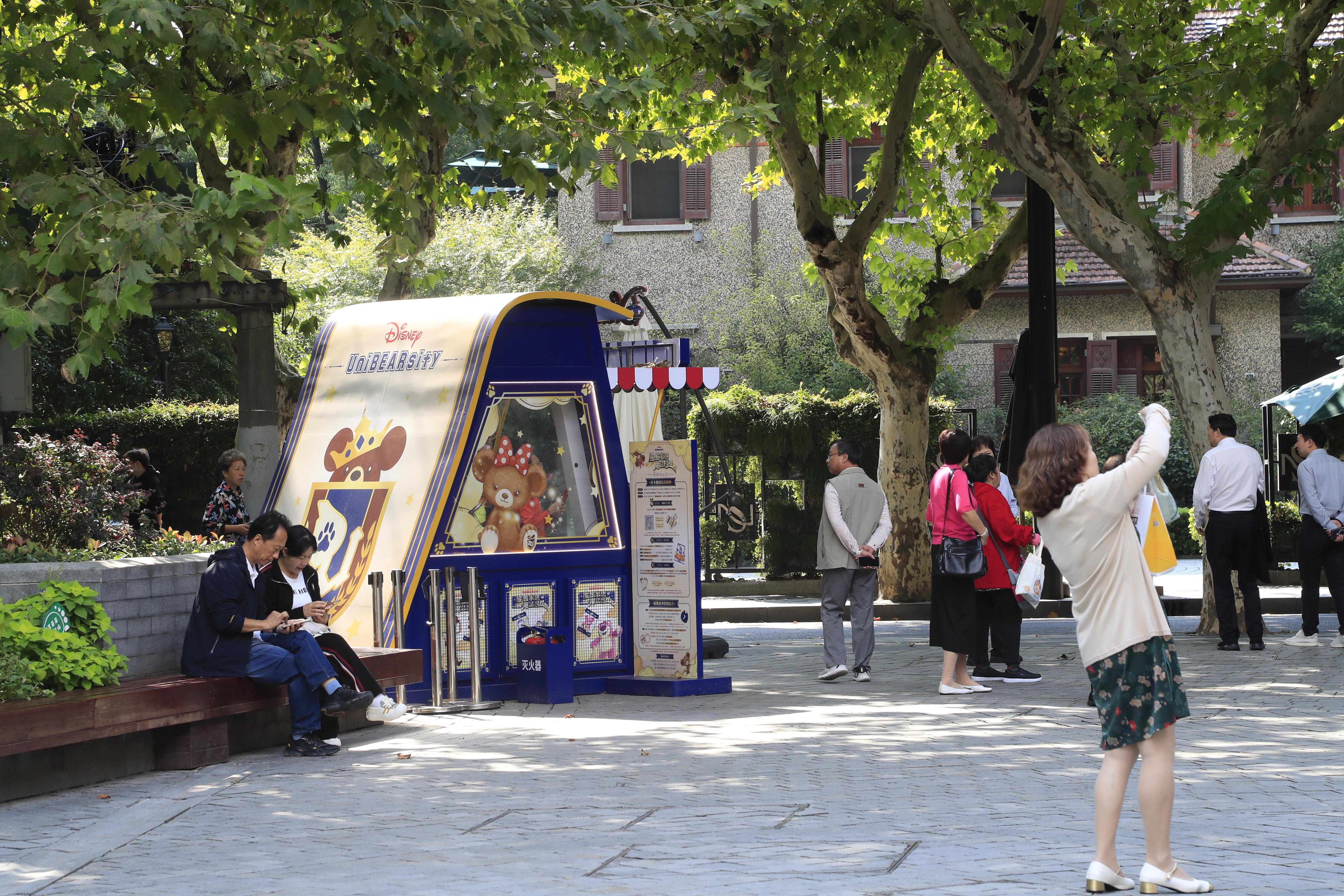 迪士尼商店大学熊的形象源自迪士尼故事,形神各异,活动期间他们以大型装置、玻璃贴、墙贴、报刊亭等形式栩栩如生地展现在大家面前,分别“藏”在梧桐树下的百年南昌路上、上海唯一一座保存完好的法式园林复兴公园里、成片花园洋房为主的思南公馆入口以及限时的“熊熊美好书店”内。