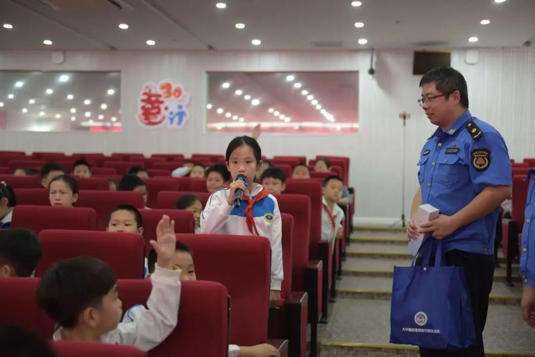 10月,正逢校园的“劳动主题月”。现场,执法队员还开展了垃圾分类知识问答等方面的宣传,学生与执法队员之间展开交流互动。