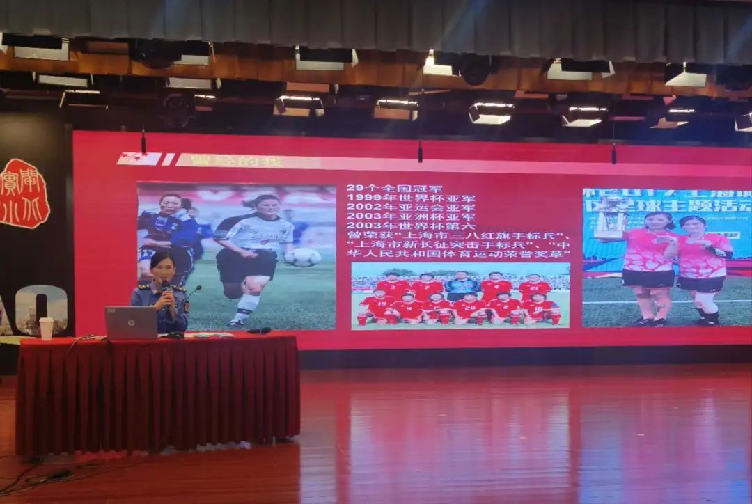 高宏霞通过分享自己在足球道路上的成长经历,以赛场上顽强拼搏的体育精神鼓励学生从小培养纪律意识,遵守国家的法律法规。