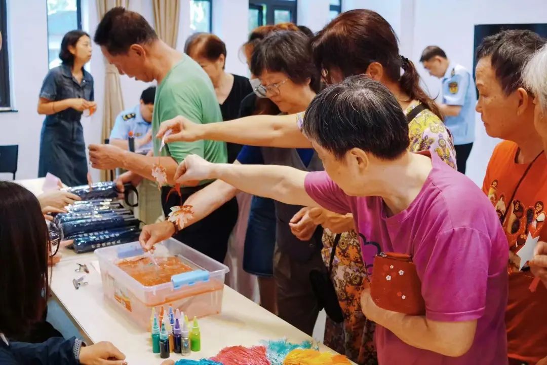 活动现场气氛热烈,居民们围坐一堂,在居委老师的悉心指导下,亲身领略了非遗漆画的独特韵味。从精心挑选材料到细致调色,每一步都充满了创意与热情。五彩斑斓的漆画书签在居民们的手中逐渐成形,化作一件件精美的艺术品,不仅展现了非遗文化的独特魅力,更激发了大家对传统文化的浓厚兴趣与热爱。