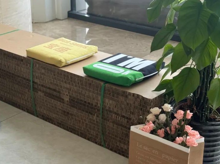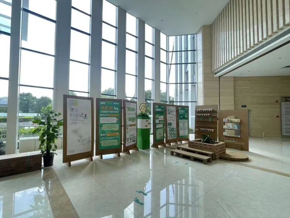 为了拓宽美育路径、创新美育载体,推动文化艺术与城市治理深度交融,让上班族和市民群众近距离感受现代艺术的魅力,淞南镇社区文化活动中心联合上海移动互联网创新园,以“遇见科创之美”为主题,在逸仙路2816号华滋奔腾大厦一楼北侧打造了一处开放式艺术空间暨淞南镇“一墙美术馆”。展览空间约80平方米,展线常规长度约150米,整体设计注重简约扁平,以减少资源和能源浪费,主要使用可循环利用的瓦楞纸制作而成的各种展陈用品,通过创意设计和手工制作,将它们变成了展台、桌椅、纸箱、盆栽器皿、摆件展柜等。