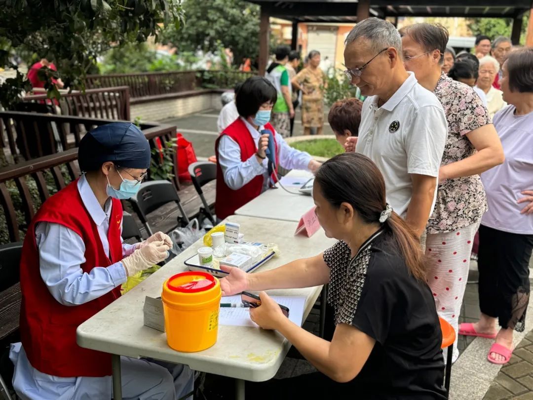 活动现场,宝山区老年护理院的医护人员们为居民们提供了量血压、测血糖、健康咨询、用药咨询、医疗咨询等服务,认真细致地询问前来就诊居民的身体状况,并耐心地为其解答各种医疗健康问题。此外,还为居民提供药品咨询、用药指导等服务,确保居民安全合理用药,普及健康常识和疾病预防知识。