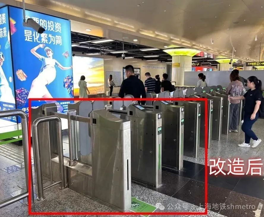 改造完成后,车站对限流栏杆、盲道等配套设施同步调整,在站厅TVM处(近1号口)设置移动限流栏杆,在发生大客流情况时,通过调整闸机出站模式,以及设置移动栏杆,保障客流平稳有序。