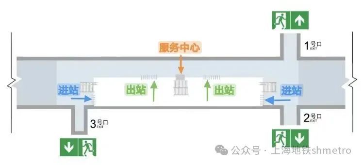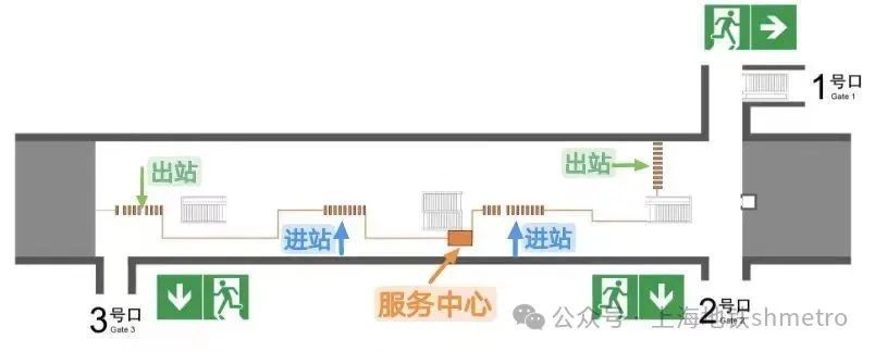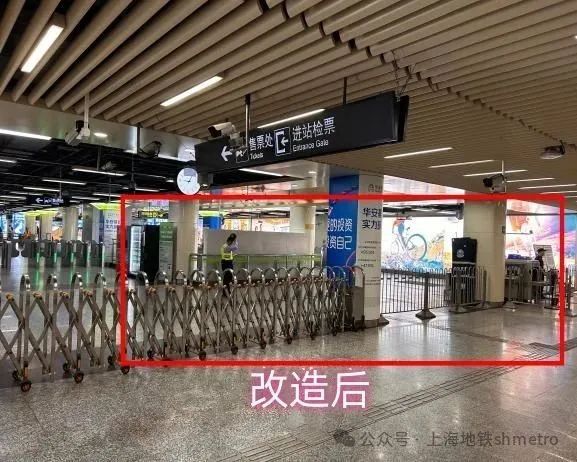 改造后的车站站厅改为了中间进站、两端出站的模式,原来靠近3号口处的公交卡服务站也调整至靠近1、2号口费区外位置。