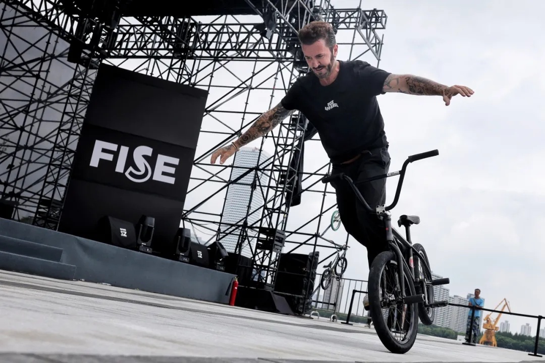 2024年10月16日至20日,FISE极限运动世界巡回赛·上海站将在上海西岸举行,自由式小轮车平地花式传奇运动员Alexandre JUMELIN在赛事发布会上进行展示
