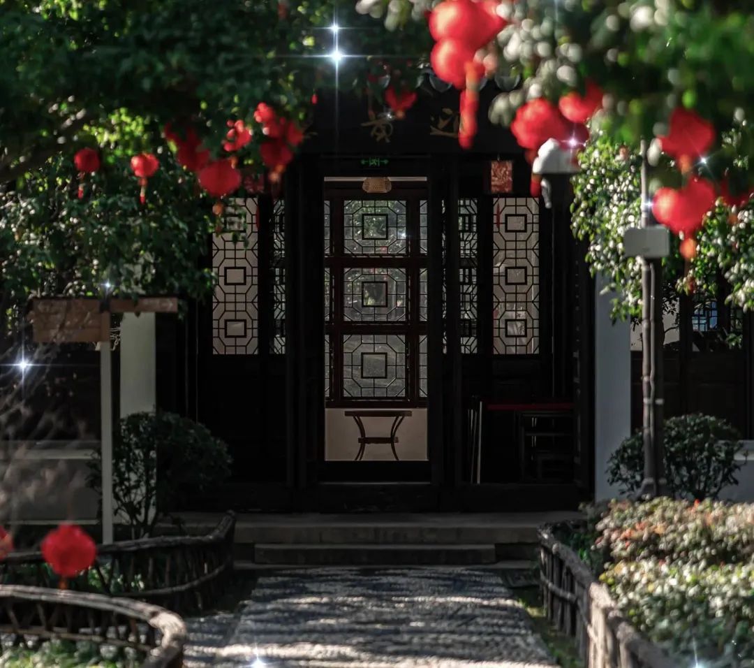 课植园是古镇上最大的庄园式园林建筑,博采江南园林建筑之众长,造景极具匠心,是来古镇必打卡景点之一。木质窗棂轻启,半扇阳光穿透缝隙洒落一地疏落光影,这秋日景致恍如梦境。