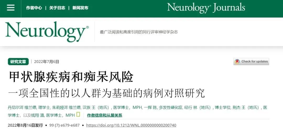 分析结果显示:65岁及以上人群中,在排除了高血压、糖尿病、冠状动脉疾病、抑郁症、酒精依赖等已知的痴呆相关风险因素后,有甲状腺功能减退症的,老年痴呆风险会增加81%。