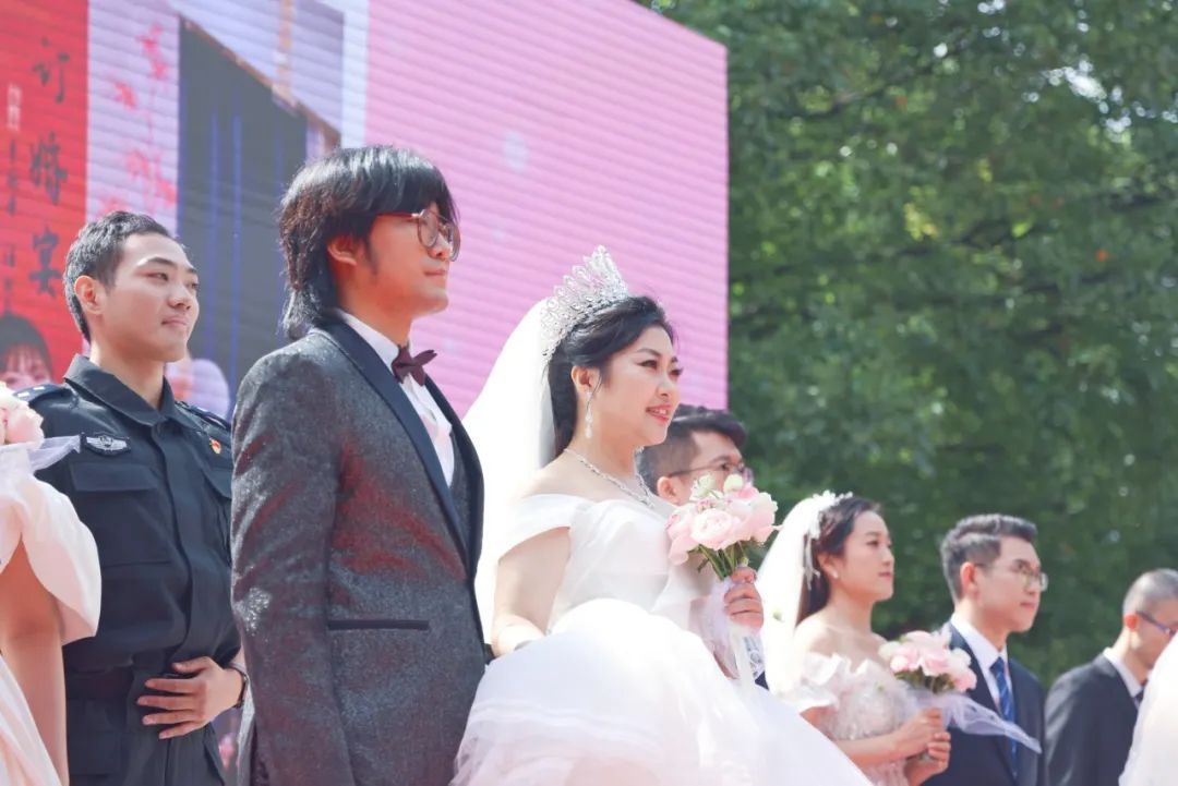 今天(10月9日),2024年“百年杨浦·百年好合”集体婚礼暨杨浦区婚姻(收养)登记中心改建启用仪式举行。18对新人来到现场,缔结爱的誓约,也与市民们共同见证这座“花园式”婚姻登记中心的正式启用! 浪漫花园,缔结一生之约 中午11点,在江浦公园 杨浦区婚姻登记中心新址的一侧 热闹非凡 在浪漫的音乐声中 18对新人登上舞台、共同宣誓 并获颁结婚纪念证书 新人们来自全市各行各业 不少人长期奋斗在杨浦 这片热土,承载他们的梦想与奋斗 也见证了他们的幸福时刻 王程和罗鑫都是“90后” 更是杨浦区社会福利院里 颇有资历的养老工作者 2021年 王程凭借技术作为重点人才 在上海落户 婚礼上,在同事们的陪伴下 这段爱情来到了新的阶段 罗鑫幸福不已, “这是我第一次穿婚纱! 感受到了被大家祝福的氛围, 特别开心!” 在杨浦相识、结婚 对于王程而言别有意义 “我们是在杨浦携手的, 今天同事们也来参与了, 这对于我而言是特别重要的回忆。” 新人陶然、李川婷 同样激动万分 “和这么多对新人一起办婚礼, 我在自己幸福的同时, 也能感受到别人的幸福!” 李川婷说, “我们恋爱、求婚都在杨浦, 整个过程都很圆满, 在杨浦的故事,真的很美好。” 现场,10对恩爱夫妻 前来为新人送上祝福 历经岁月,他们相知相伴 是大家口中的 钻石婚、金婚、宝石婚、银婚…… 已婚62年的贾起民、傅丽珍夫妻 都是复旦大学的教授 看着年轻人的集体婚礼 他们也想起了自己过去的故事 贾起民说, “在这么一个特殊的时刻, 我祝福新人们 未来互相尊重,好好生活!” 婚姻登记,搬进公园里 本次活动中 杨浦区婚姻登记中心新址 正式亮相启用 这是一处“花园式”的结婚登记点 身处大自然的怀抱 1111号的门牌 象征着“一心一意,一生一世” 新址整体建筑 为全落地玻璃幕墙结构 门头选用中国传统红色系 组成半圆形鸾凤和鸣门 幕墙外侧贴有 象征“喜事临门”“比翼双飞”的 喜鹊与彩带 连接新人的美好姻缘 独特亮眼的外观 成为了众多新人心目中的 “网红打卡地” 中心共有上下两层,一楼设有结婚登记、离婚登记、收养登记、婚姻文化展项和婚姻家庭辅导等区域,二楼设有2个结婚颁证厅和婚姻文化展示区域。结婚登记大厅以热烈红、纯洁白为主色调,每一个登记隔间都有圆弧拱门,并配有“心心相印”“佳偶天成”等专属名字,带来美好的寓意。 此外,中心还设置了3个集“功能、体验、互动”为一体的展项,刻画了三个阶段对于爱情和婚姻的理解,包括“寻爱之旅”“缱绻情话”“和美相守”,让新人在这里分享爱情的甜蜜喜悦,感悟婚姻的“柴米油盐”。 整体来看,新址是一处集婚姻收养登记、婚姻文化展陈、婚姻家庭辅导为一体的婚姻家庭综合服务体,旨在为新人带来融合公园美景与文化底蕴的独特婚姻登记体验。 杨浦区婚姻登记中心工作人员郭婷婷介绍,“我们的服务也有所提升,实现了从程序式到会客式的改变,将原来略显程序化的沟通方式,转变为面对面的陪伴式服务,希望进一步拉近与当事人的距离。” 杨浦区婚姻登记中心新址 位于长阳路1111号 服务时间为每周一至周六 8:30-11:00,13:30-16:30 欢迎新人们前往 留下爱的誓言!