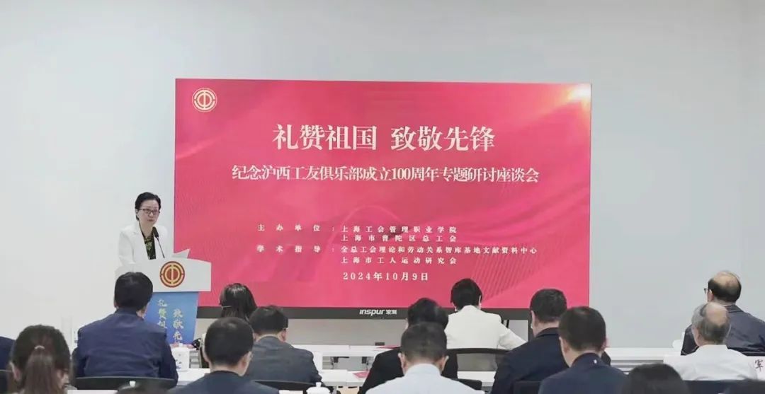 10月9日,上海工会管理职业学院、普陀区总工会联合举办的“礼赞祖国 致敬先锋”纪念沪西工友俱乐部成立100周年专题研讨座谈会在普陀区职工文体活动中心举行。