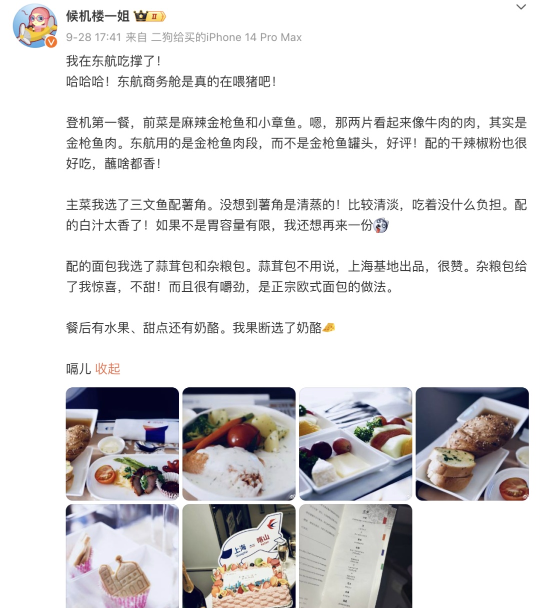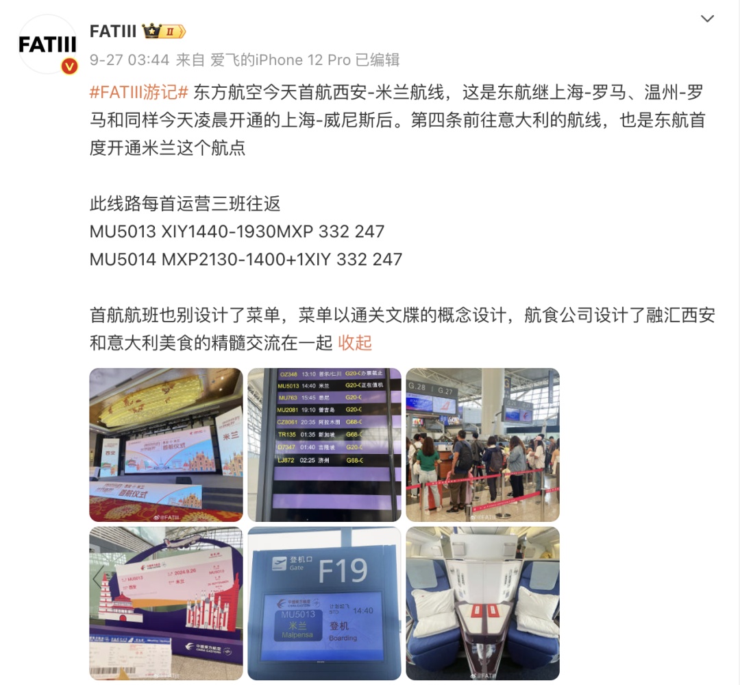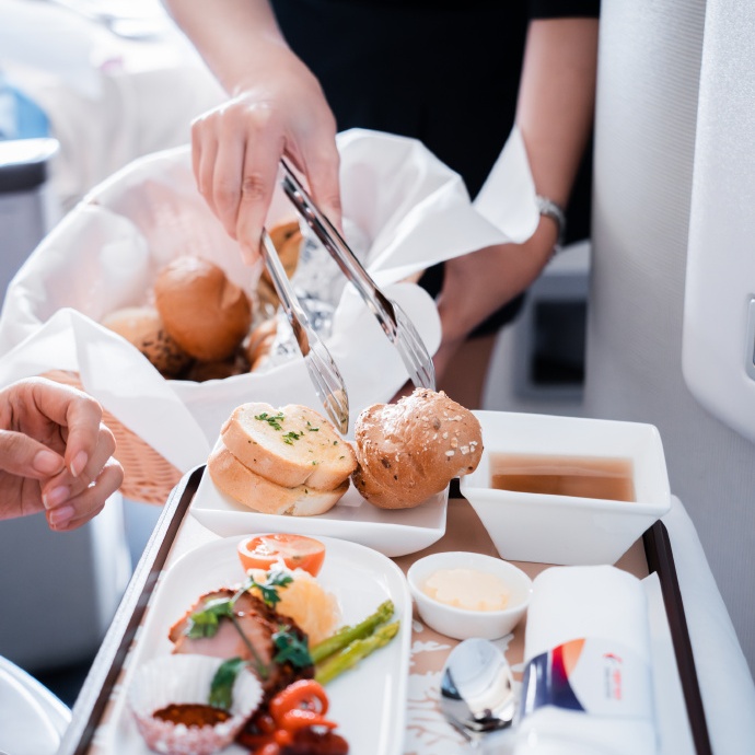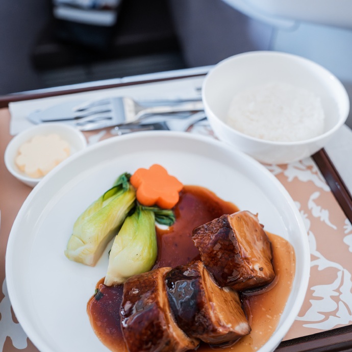航班上配备了东航天厨匠心打造的机上美食。从开胃面包到餐后甜品,再到琳琅满目的酒水单,多样化的选择满足不同旅客的需求。“西安-米兰”的航班上菜单还采用了“通关文牒”的创意巧思,尽显东方风韵。