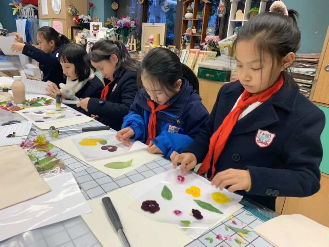 于是,自然学科中又融入了艺术的元素,老师鼓励他们将从农庄和校园里采摘到的各类叶子制作成树叶贴画和装饰品,利用摄影、绘画、刺绣、干花等方法将植物制作成艺术品,在植物艺术DIY课程中学习制作植物标本书签、浮游瓶、植物滳胶艺术、植物染等。