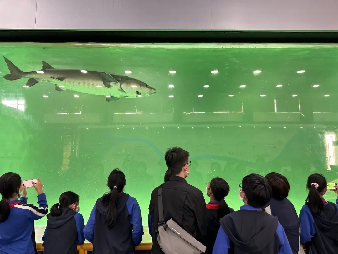 在选修课“中华鲟保护”课程上,学生们走进了学校附近的中华鲟保护基地,许多学生也是在这里第一次见到鲟。这也让他们不由得思考起:面对越来越稀有的水生生物,作为学生,也有义务向周围人去科普相关知识,尽自己所能保护它们。