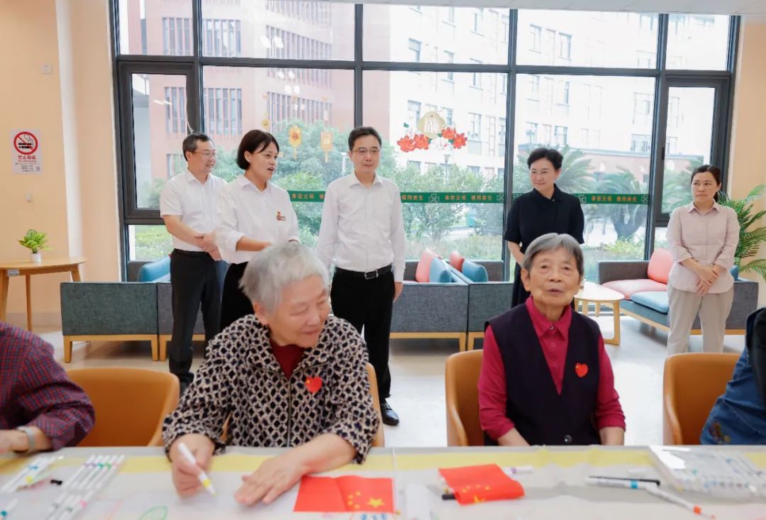 随后,王华杰来到松江社会福利院。松江社会福利院于1998年12月正式成立,2016年11月搬迁至龙腾路,设有自理长者照护区、失能长者照护区、认知症长者照护区等功能区域,入住老人平均年龄达91岁。王华杰认真听取院方负责人关于福利院运营情况的介绍,并走进活动室、5G诊室、认知症照护区等,了解询问院内老人的日常起居情况。王华杰指出,要深入践行人民城市重要理念,不断加强老龄工作和养老服务保障,持续优化人才队伍建设,切实做好新时代尊老敬老、爱老助老工作;他叮嘱福利院工作人员密切关注老人的健康状况,悉心照料老人生活,把关心关爱老人的工作落到细处、实处。