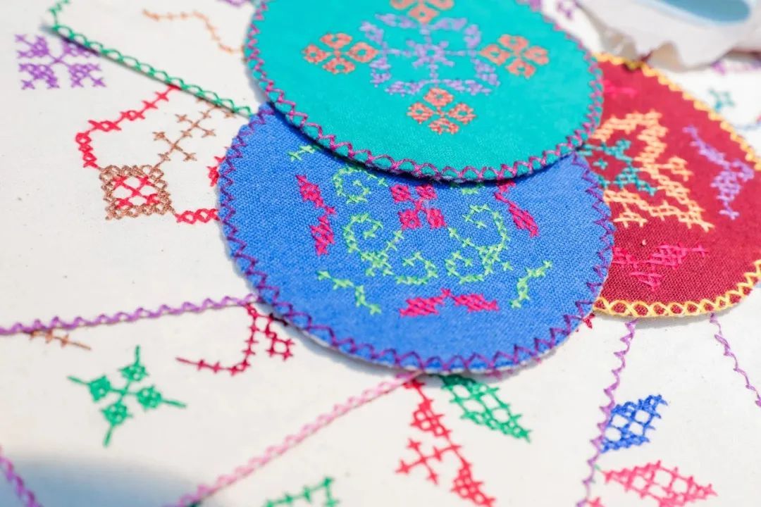 创意产品:罗朵朵系列文创产品、罗泾十字挑花系列文创产品、顾村结艺工艺品。