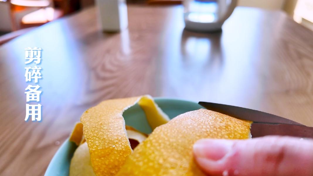 梨削皮后剪碎备用。