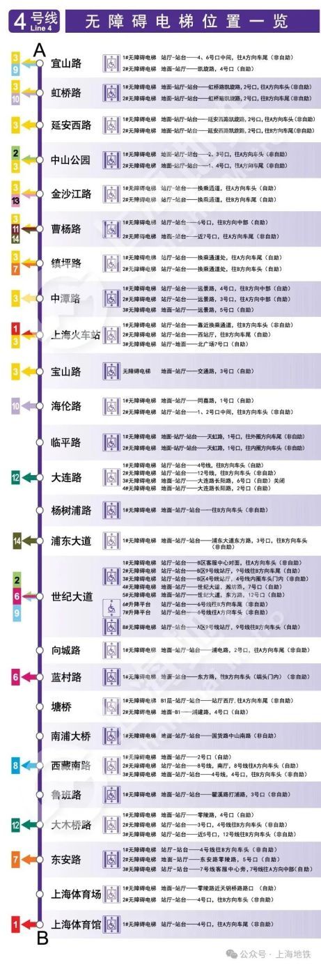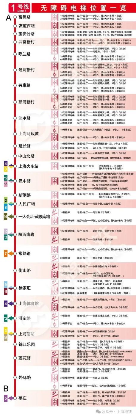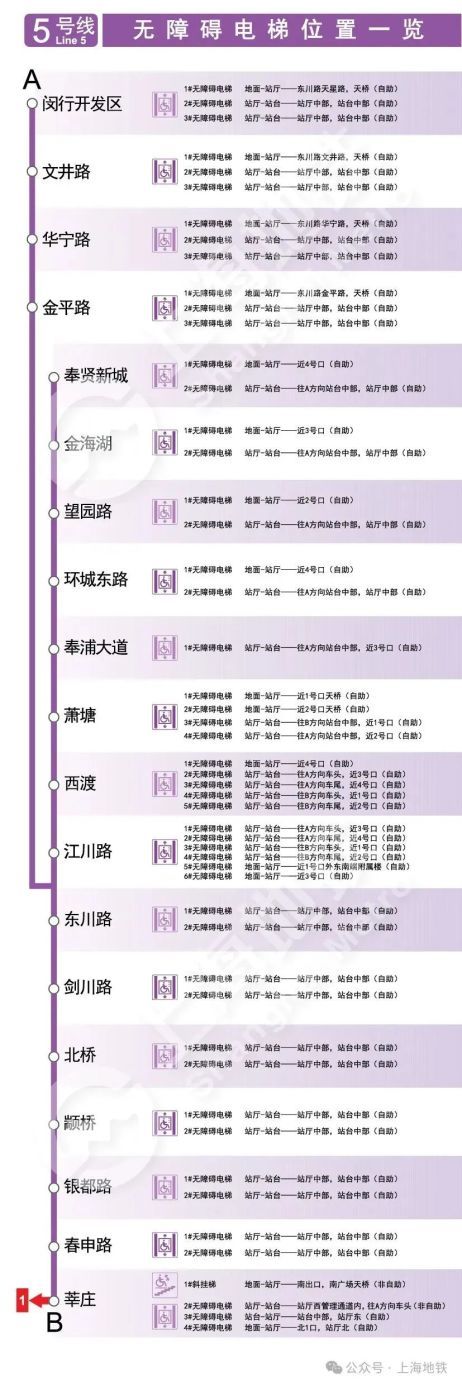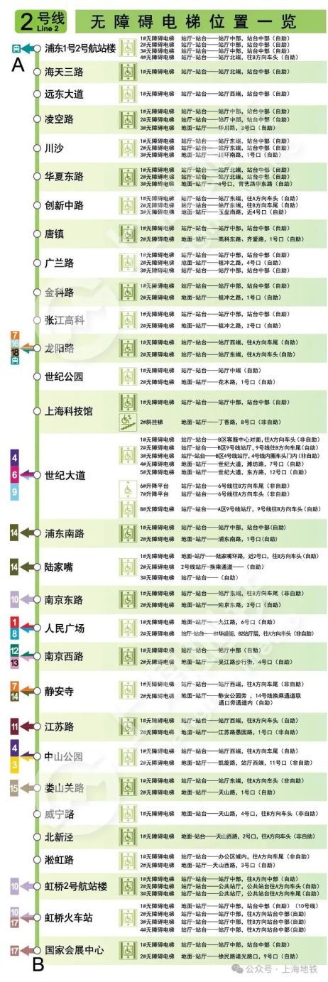 本篇内容主要介绍无障碍电梯(上),上海地铁后期将发布(中)、(下)。以下信息截至日期为2024年9月,如有变化,具体情况请以现场实际为准。