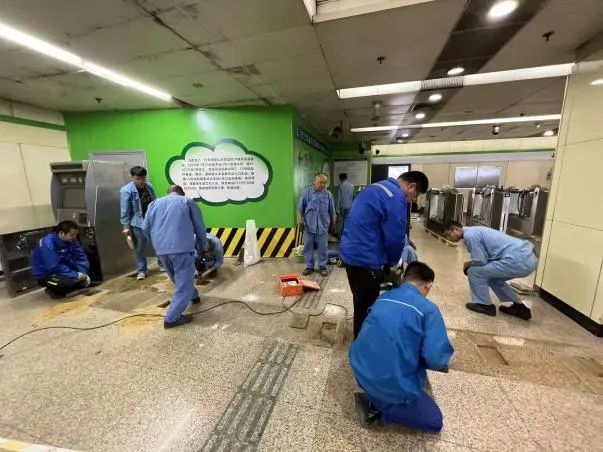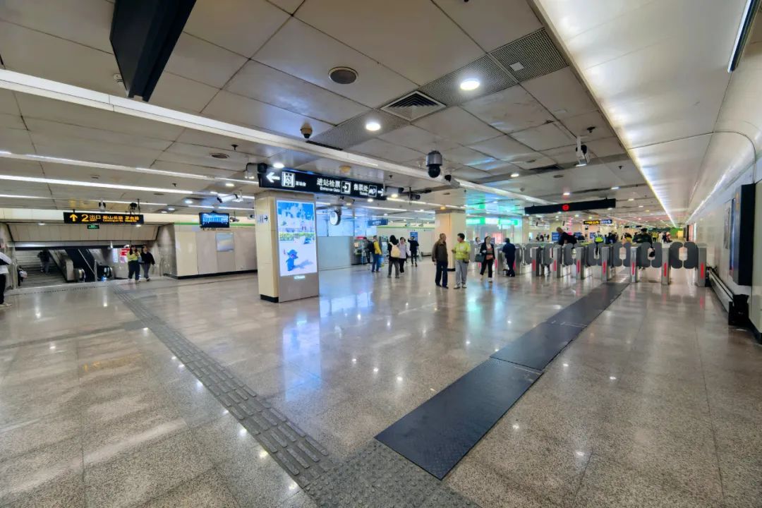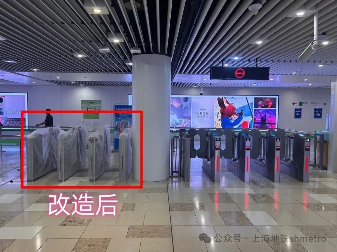 为不影响乘客正常通行,本次施工均在车站运营结束后进行,完成了涉及既有进出站设备检票机移位、新增进出站设备、服务中心移位、配套摄像机移位、盲道改建、栏杆拆除及安装等多改造项内容。