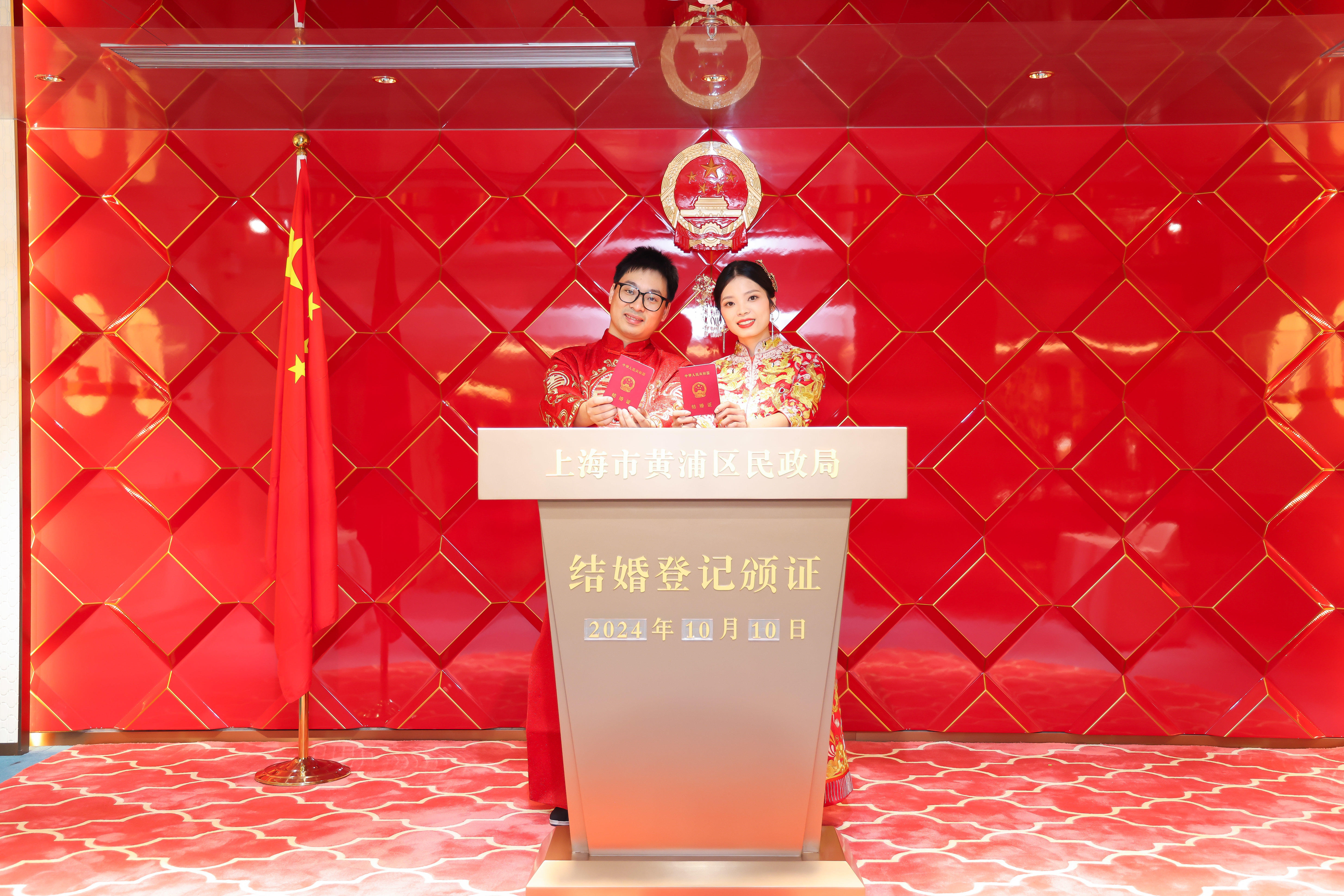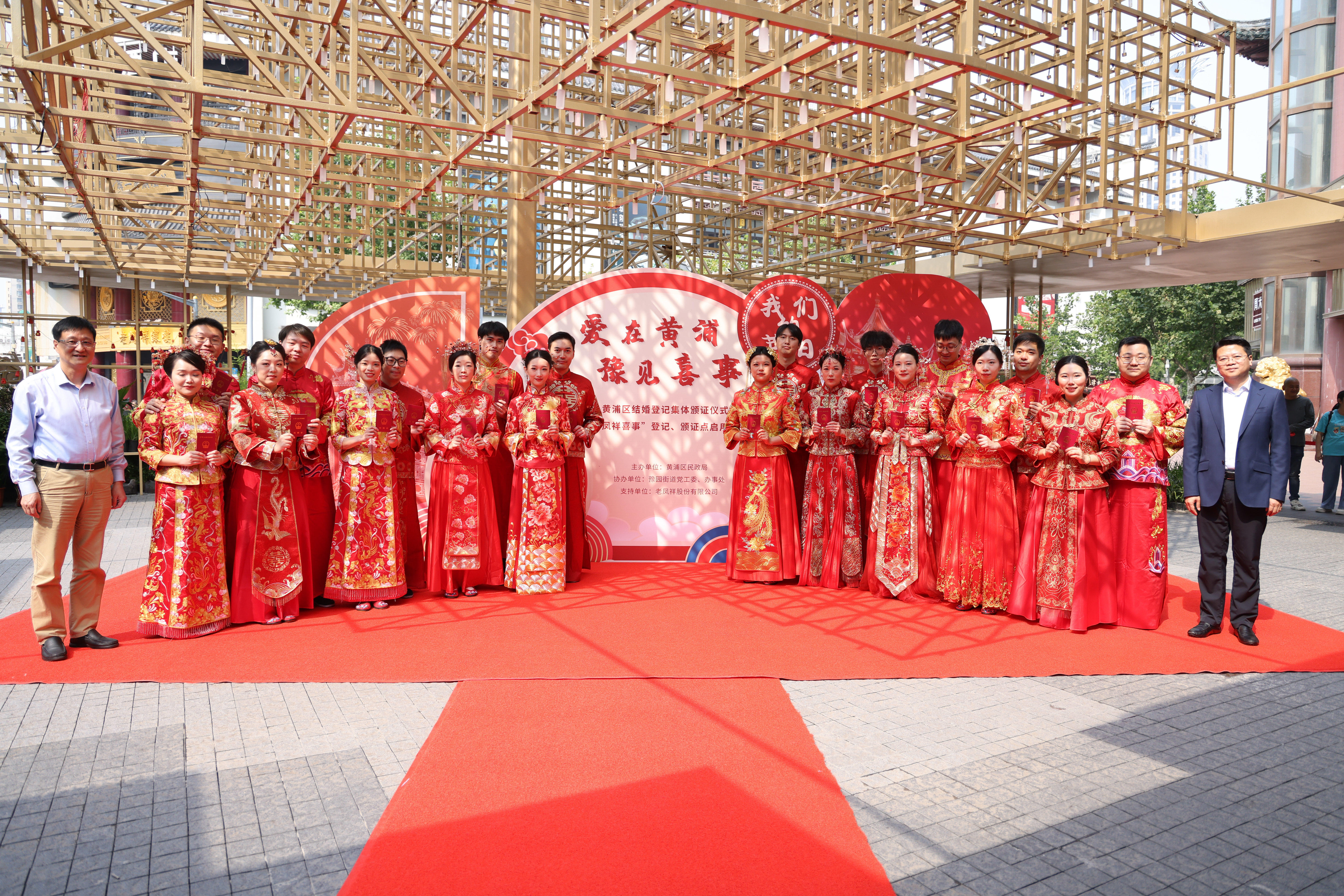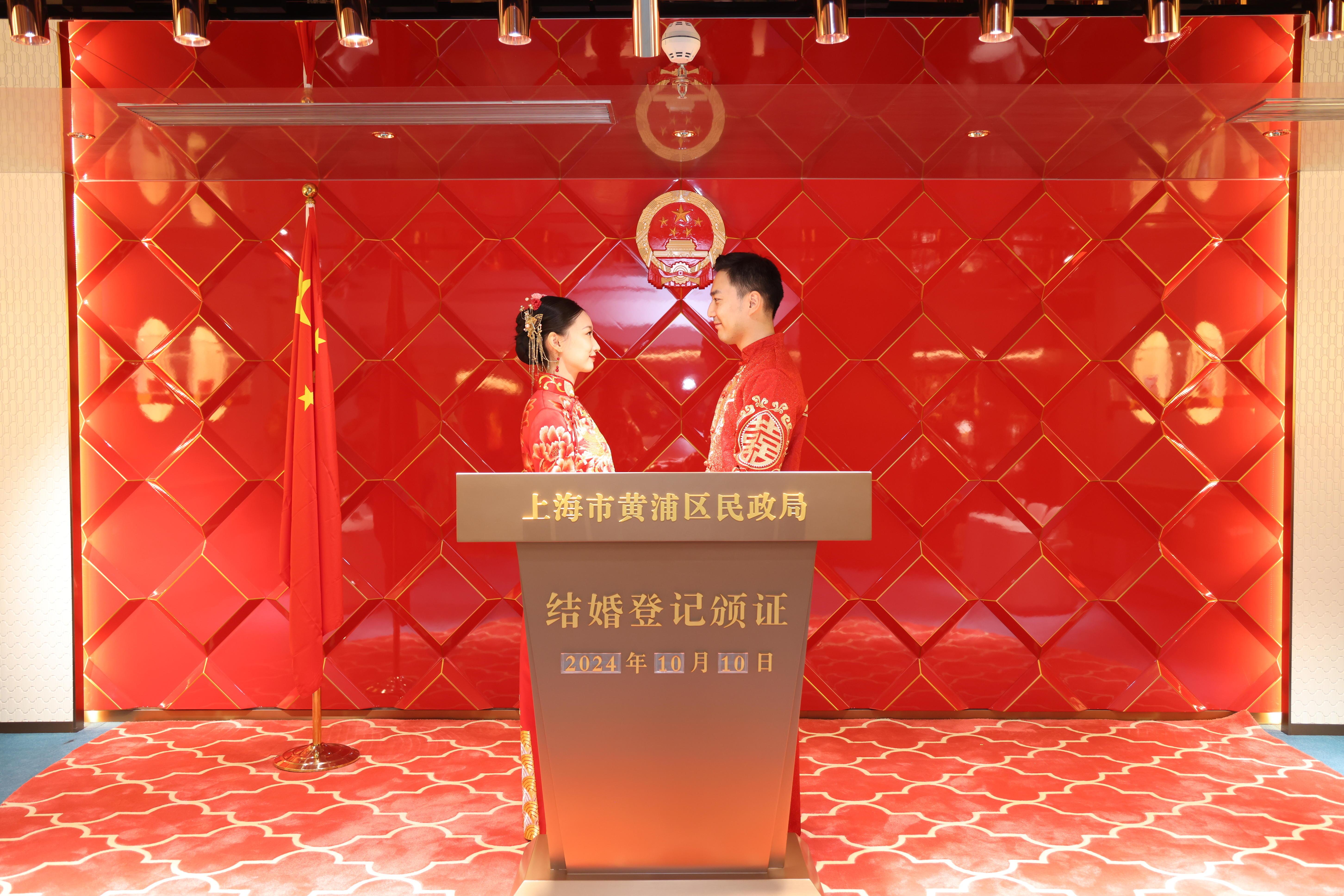 10月10日,“爱在黄浦,豫见喜事”结婚登记集体颁证暨黄浦区婚姻登记中心“凤祥喜事”结婚登记点、颁证厅启用仪式举行。