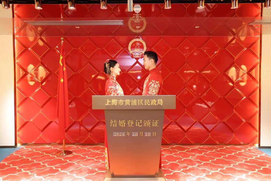 凤祥楼内抬头可见灵动的凤凰变幻出520与爱心的造型,登记点与颁证厅充满了浓郁的“喜”文化,颁证台都精心雕刻了人生八喜的拉环,新人通过“随申办”婚姻登记版块,就可选择该中心作为领证地点,在双十一、双十二这些好日子来办理结婚登记,感受黄浦区民政局提供的“12+365”婚姻登记服务新模式。