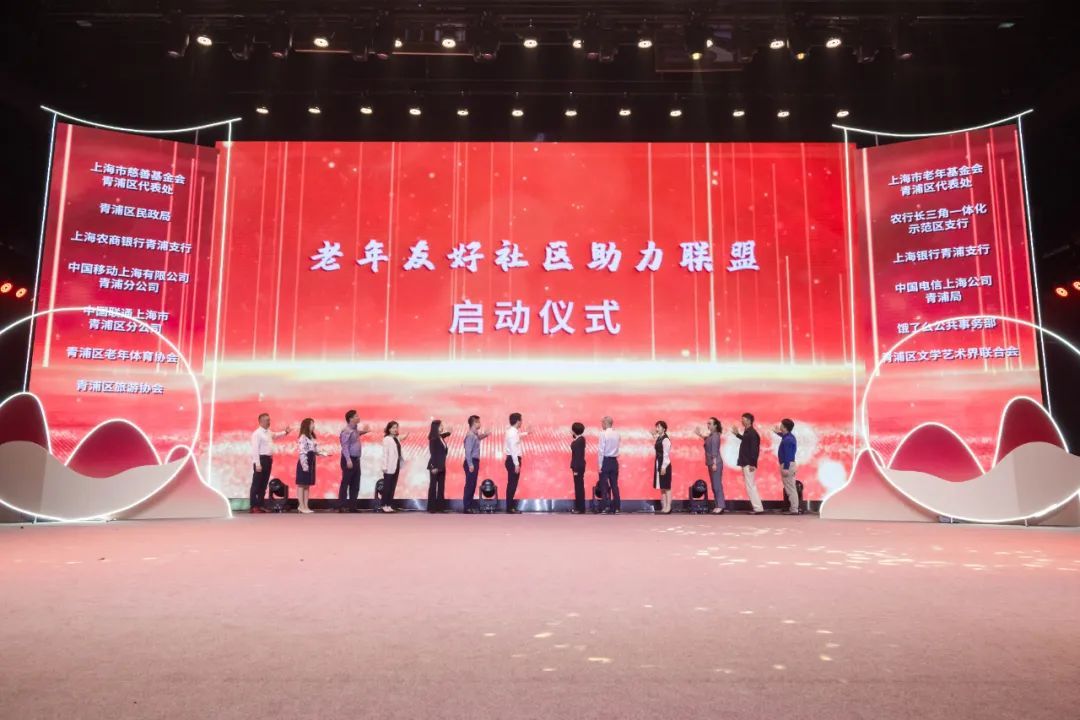 与会嘉宾共同按下启动按钮,标志着青浦区“老年友好社区助力联盟”正式成立。该联盟旨在汇聚各方力量,共同推动青浦区老年友好社区建设,为老年人提供更加优质、便捷的养老服务。