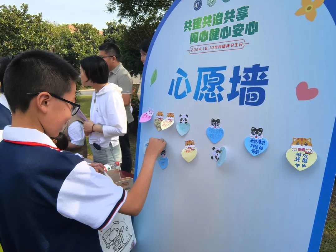 10月10日下午 金山区2024年世界精神卫生日 主题宣传活动 在上海市新农学校举办 通过心理游园会的形式 锻炼孩子们的 情绪识别与管理能力 活动现场,学生们在落叶上涂写,分享自己的快乐、烦恼和祝福。考试不挂科是大多数同学的愿望,也有同学以图代文,画出各式各样的表情,通过这种生动有趣的方式表达自己的情绪。 区精神卫生中心的医师为学生们带来一场心理健康讲座,专业地讲解不同情绪产生的原因以及如何释放情绪。 新农学校学生范皓轩表示:“通过这次活动,我知道了在生活中如果遇到问题,我们需要去直面它,而不是去逃避。当遇到自己实在解决不了的困难,也可以寻求老师和父母的帮助。” 事实上,情绪管理与青少年的心理健康息息相关。当青少年的负面情绪得不到妥善处理,很可能会演变成严重的心理问题,如焦虑症、抑郁症、压力相关障碍等。 区精神卫生中心副院长张宴萍说:“今年的活动旨在让青少年学会释放负面情绪。通过教授一些技巧和方法,让他们在早期就能自行处理负面情绪。如果出现明显的情绪无法自控、非躯体疾病所致的身体不适,以及家长也无法调节负面情绪时,就需要及时求助专业的心理医生。” 记者:杨惠聪、朱磊 通讯员:姚佳玲 编辑:俞岚婷