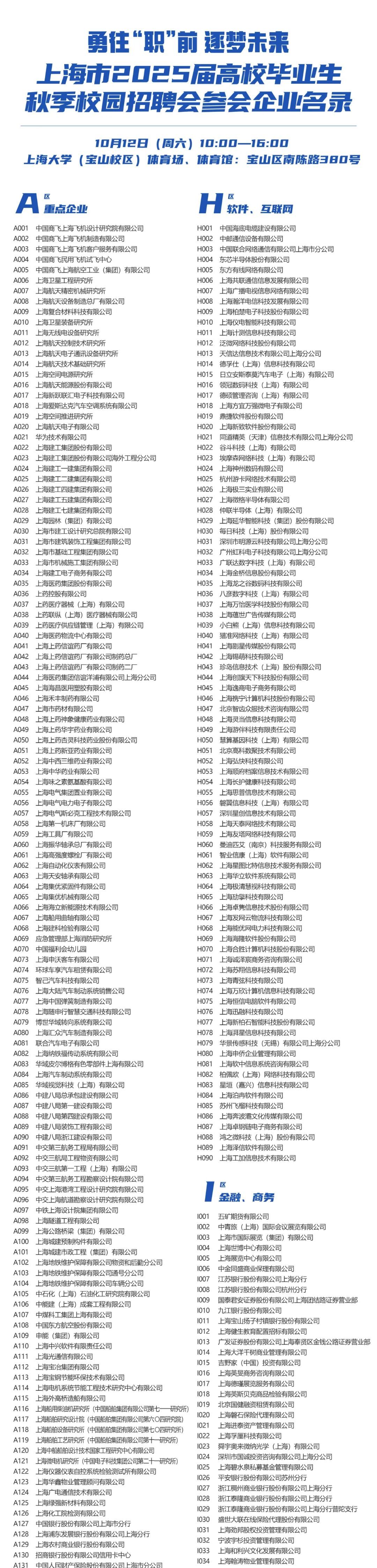 据市教委介绍,为促进2025届高校毕业生高质量就业,聚焦“三大先导产业”与“六大重点产业”布局结构对人才的广泛需求,勇往“职”前,逐梦未来——上海市2025届高校毕业生秋季校园招聘会将于10月12日在上海大学宝山校区举办。