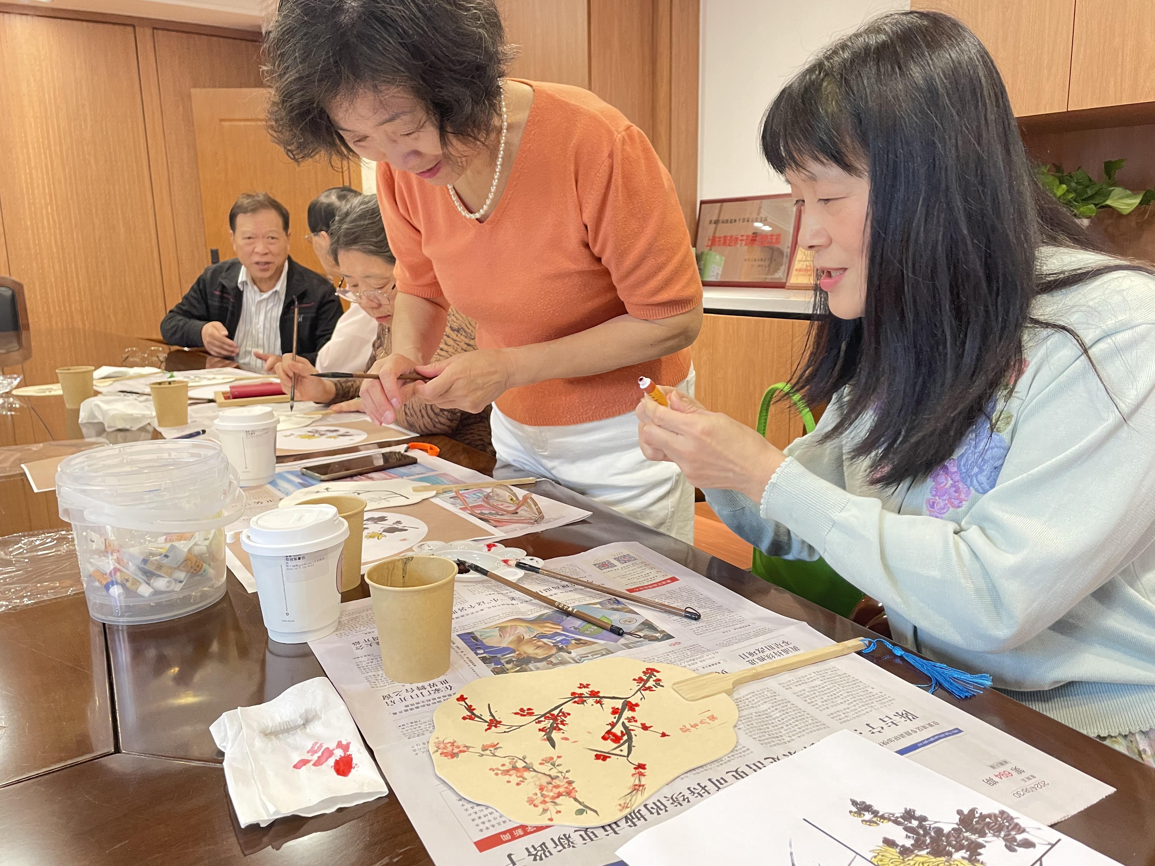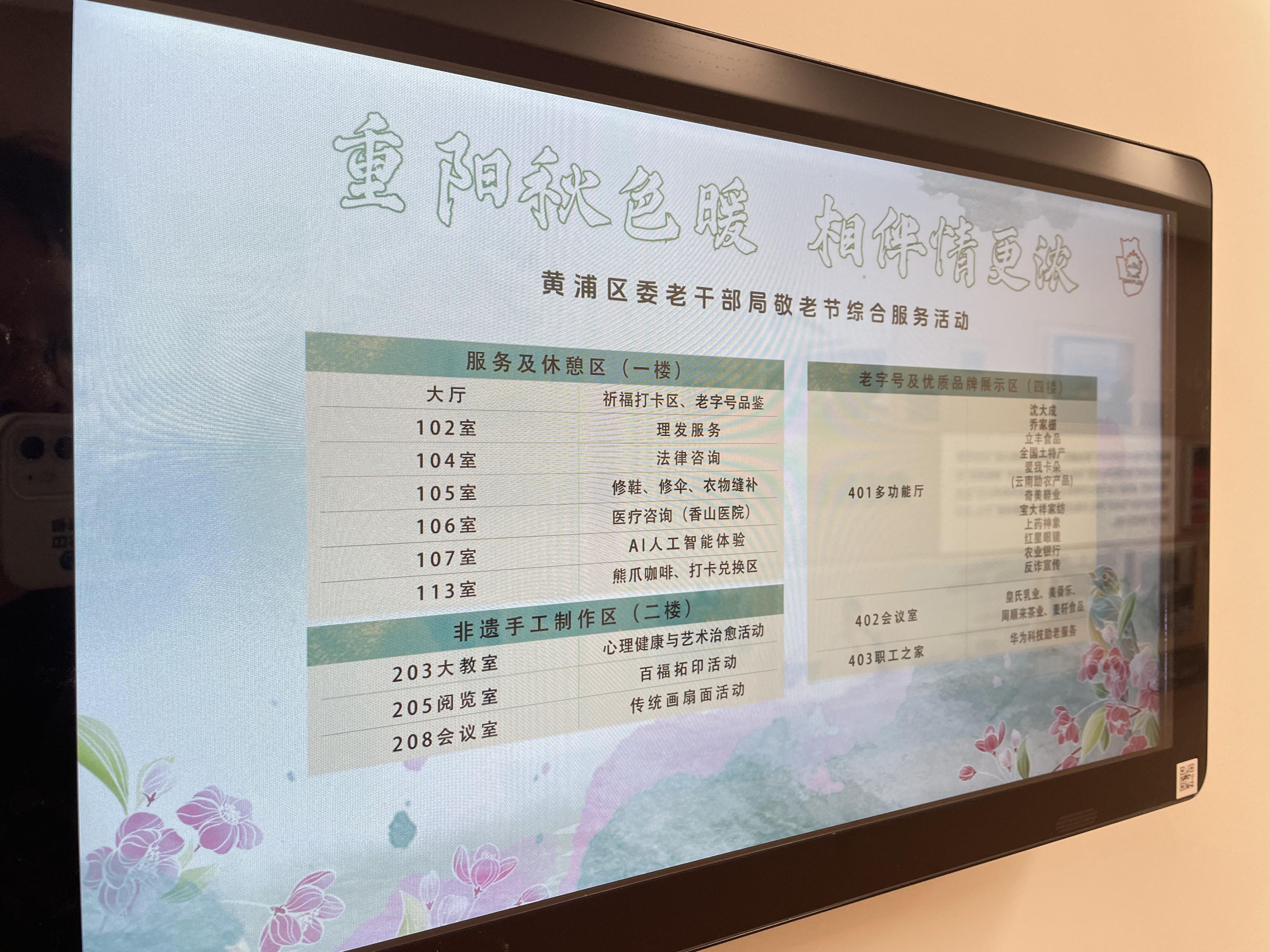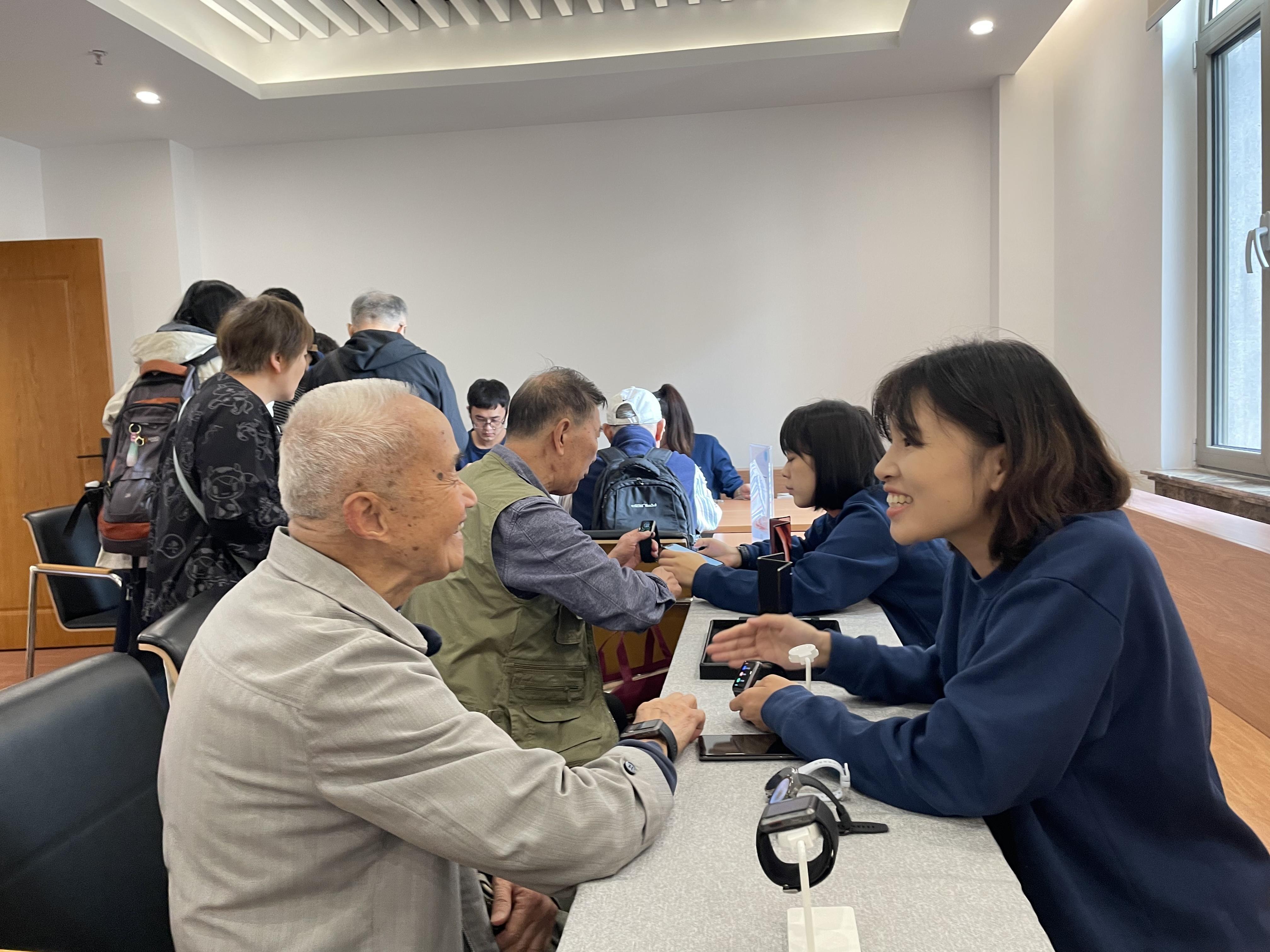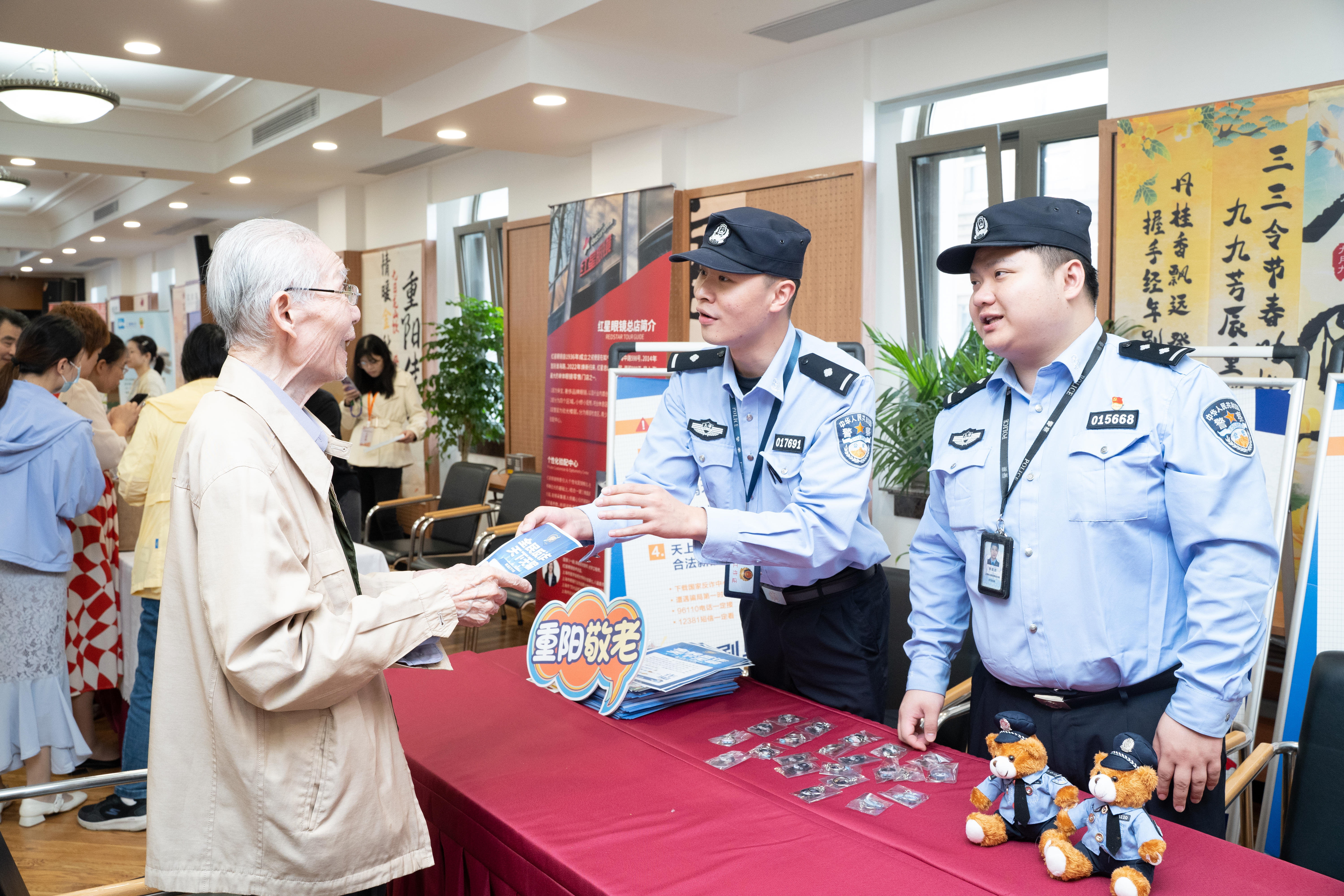 教室里,一场心理健康与艺术治愈活动吸引了不少老同志参与,香山中医医院的医生通过心理测评、科普宣传等方式,帮助老同志们管理情绪,舒缓压力,并手把手教授老同志制作编织画,在游戏的同时愉悦身心。香山中医医院的医生现场搭脉,为老同志们的身体健康保驾护航。来自黄浦公安分局淮海中路派出所的民警向老同志们宣传反诈知识,警惕防范以各种养老服务名义开展的诈骗行为。科创集团、华为科技的工作人员给老同志们带来了最新的AI人工智能体验及技术展示。此外,手机贴膜,拍照打印服务更是吸引了众多老同志驻足。“我家老人已经96岁了,众多项目里,一眼就先选上了拍照体验。”看着刚拍完的照片正从打印机里缓缓打出,老人开心地笑了起来。农业银行、上海银行现场为老同志解答银行理财方面的安全知识,提供优质便捷的银行服务。法律咨询,理发服务、家用物品修补等传统综合服务也深受老同志们的喜爱,现场各摊位前人潮涌动,气氛热烈。