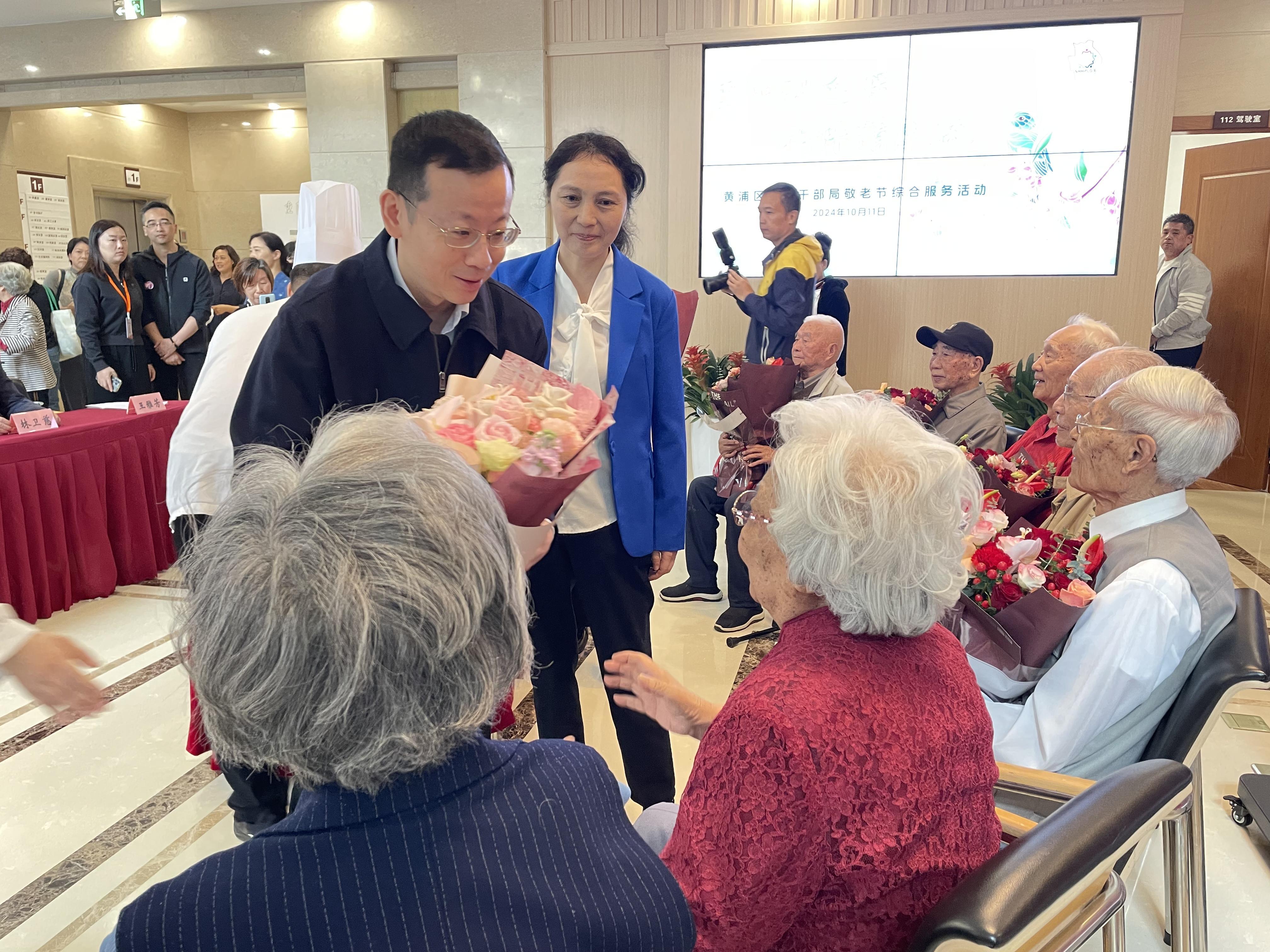 10月11日上午,区委老干部局举办“重阳秋色暖 相伴情更浓”——2024年敬老节综合服务活动。区委常委、组织部部长李铭出席活动。今年的敬老节活动,区委老干部局特别举办集体祝寿活动,李铭向老同志们送上鲜花,感谢他们关心和支持黄浦的各项工作,并祝老同志健康长寿,幸福安康。