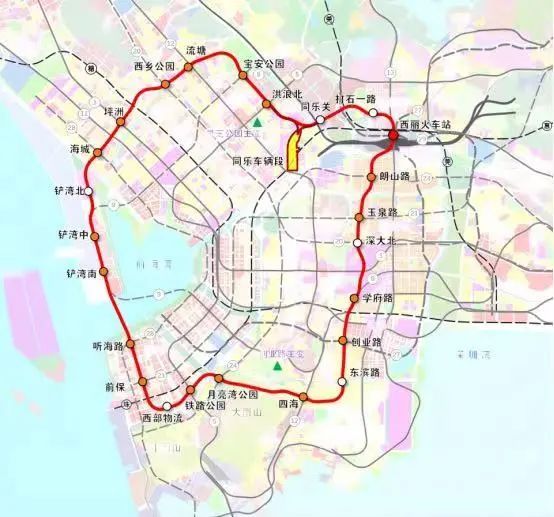15号线是深圳首条环形地铁,被称为“深圳一环”。该线路是深圳西部发展的关键线路,位于深圳市南山前海中心,是串联前海、南山和宝安中心区的普速环线,线路全长32.2公里,设站24座,其中换乘站18座。线路建成后,将极大提升蛇口、高新北、留仙洞、宝安中心、西丽和未来科技城等片区的轨道交通服务水平,对区域发展具有重要意义。