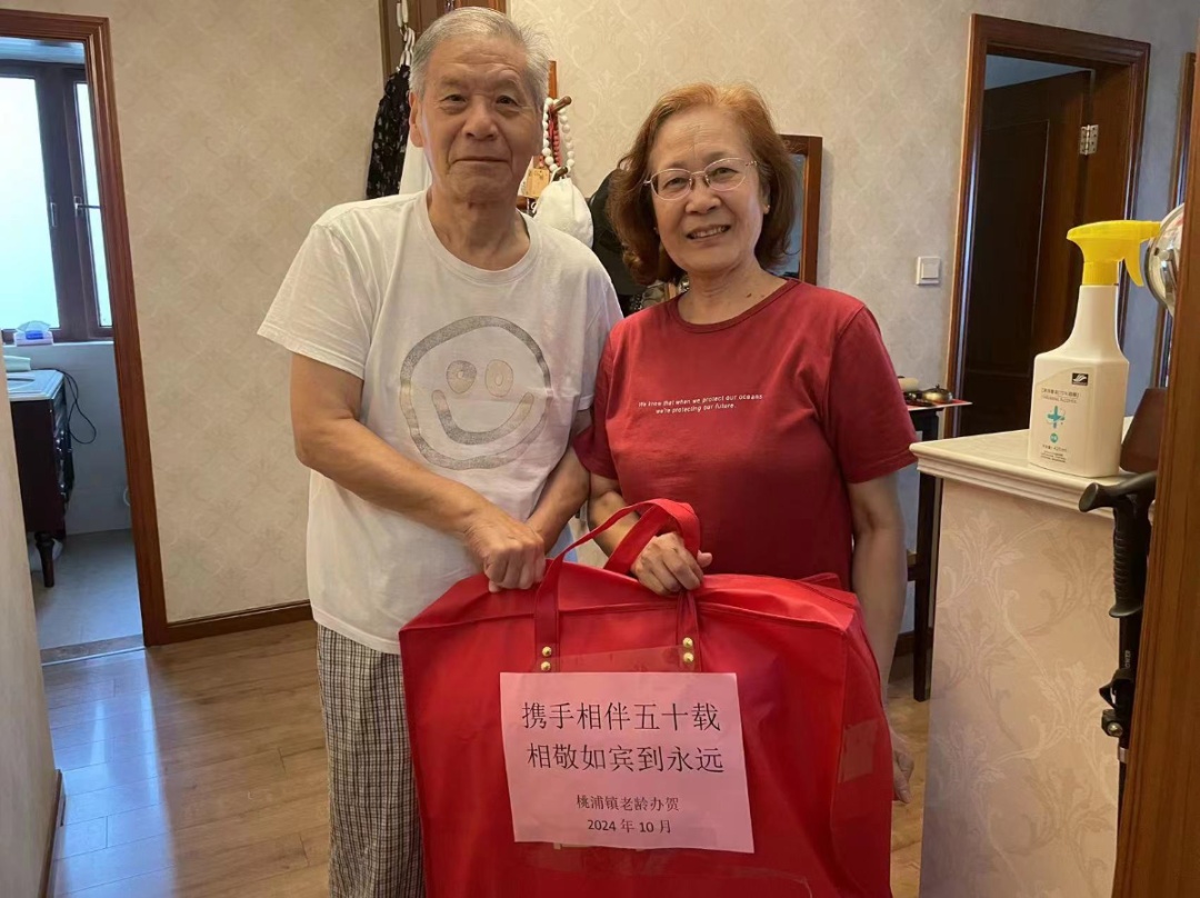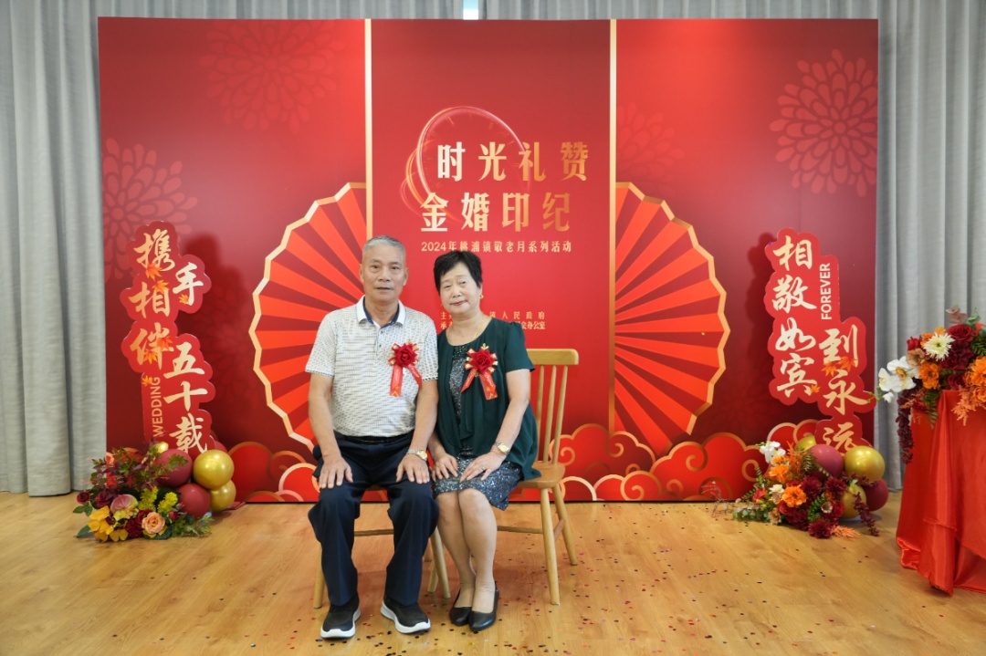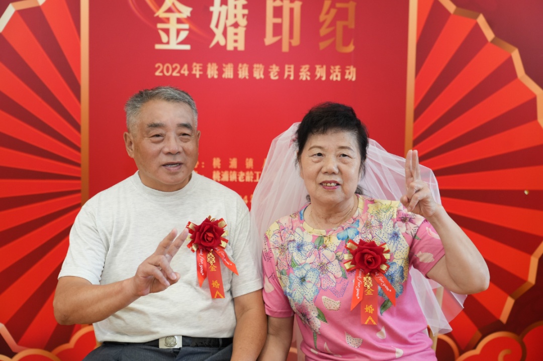 据介绍,今年重阳节,桃浦镇在往年慰问金婚老人送礼包的基础上,还提供拍摄金婚婚纱照的服务。“每年在敬老月我们都会举办金婚庆典的活动,给每对金婚伉俪赠送寓意‘温暖一辈子(被子)’的床上用品。迄今已经连续举办了15年,见证了1100余对金婚伉俪半个世纪的爱和承诺。”桃浦镇社区服务办负责人表示,“今年,还特别开展金婚照拍摄特色活动,希望通过这样的形式,记录下他们爱的承诺,激励着更多小家庭在爱的道路上勇往直前。”