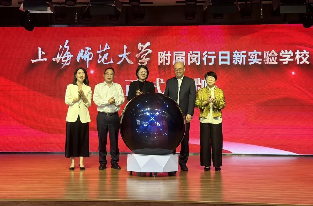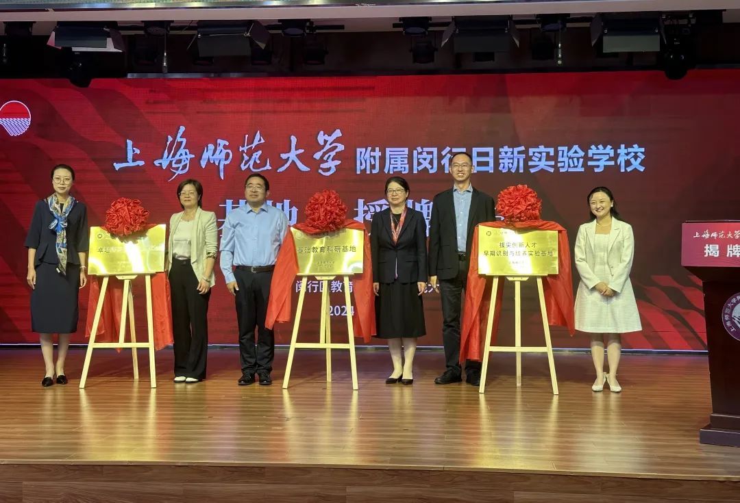 现场,上海师范大学附属闵行日新实验学校揭牌成为上海师范大学基础教育科研基地、上海师范大学卓越师范生实习基地、上海师范大学拔尖创新人才早期识别与培养实验基地。随着基地校的设立,上海师范大学将全方位地支持、帮助学校更深入地开展教育教学研究、持续课程改革、优化师资队伍培养,使学校教育教学迈向新高度。