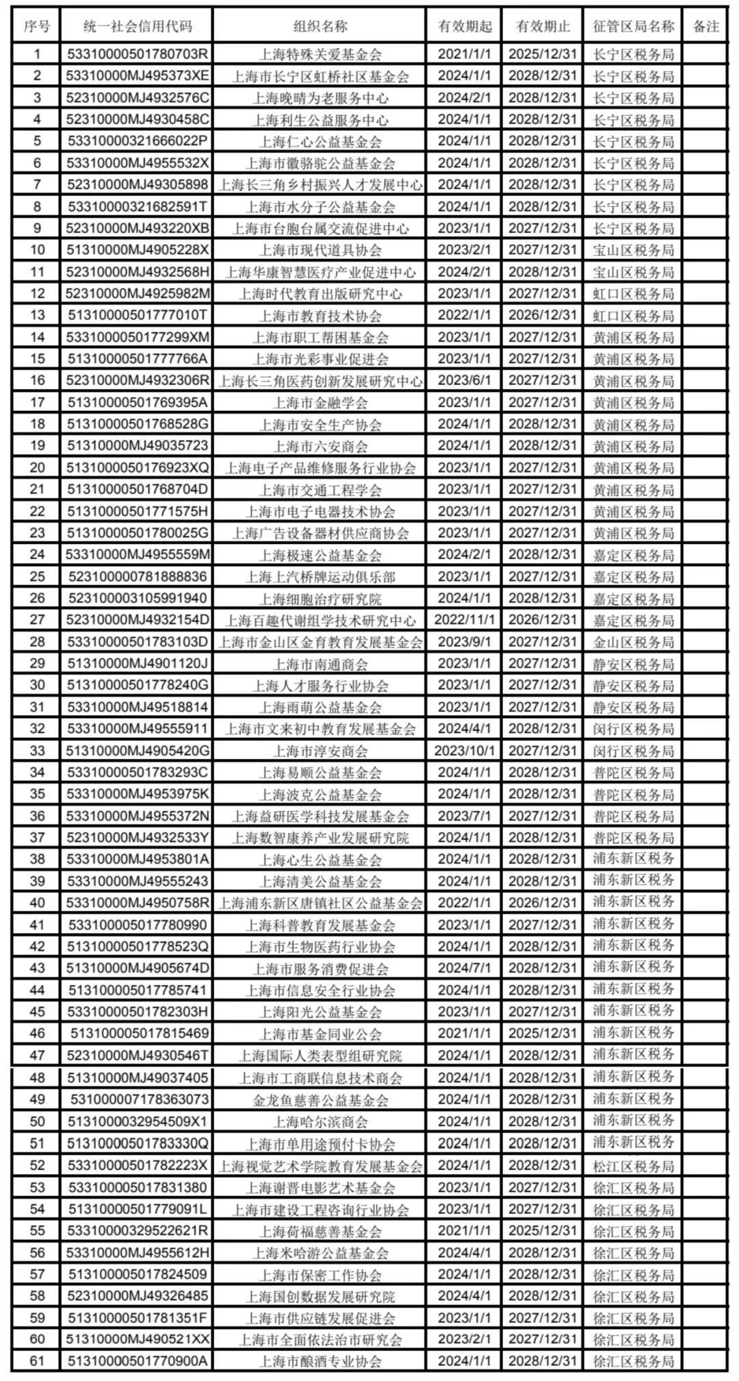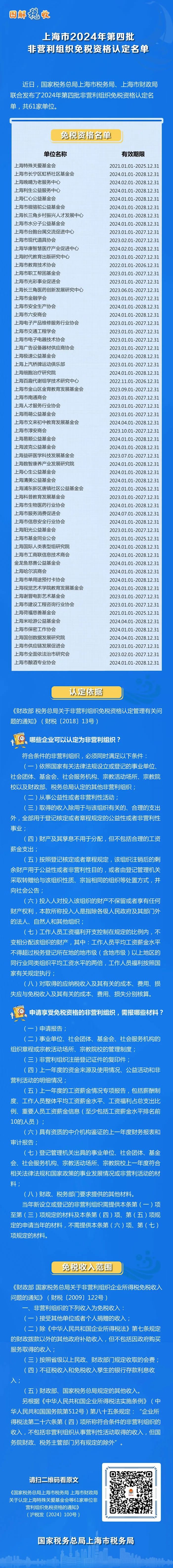 上海市2024年第四批非营利组织免税资格认定名单