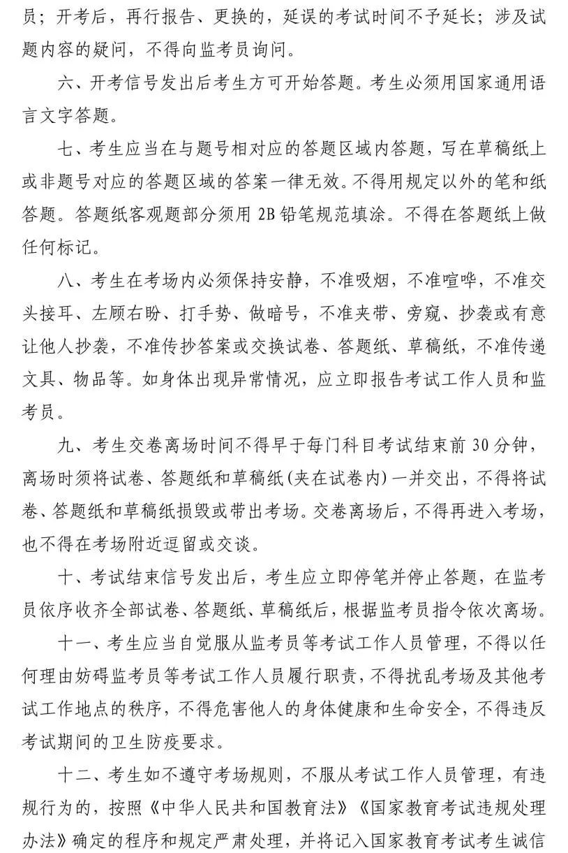 4.考生迟到15分钟后,不准进入考点参加当次科目考试;交卷出场时间不得早于每科目考试结束前30分钟。