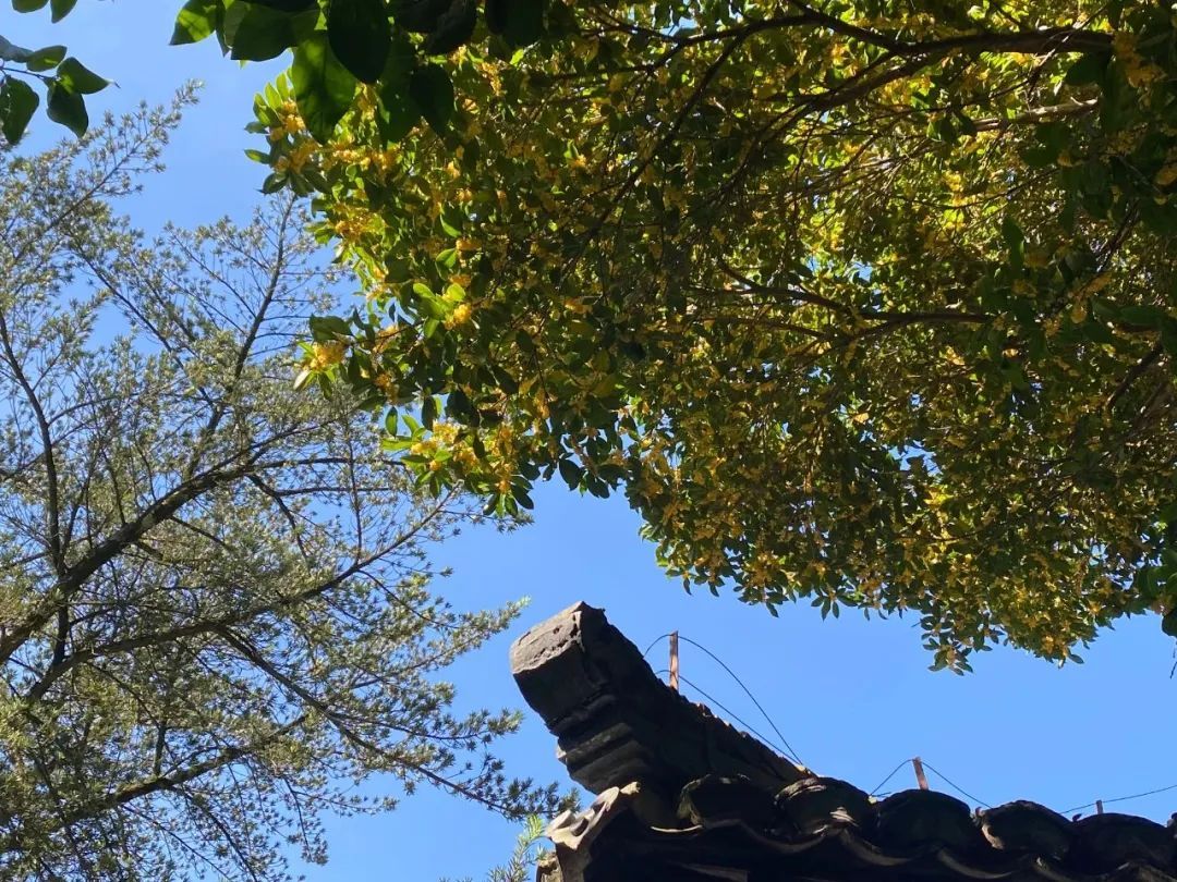 漫步于松江老城的袜子弄,呼吸间尽是桂花醉人的芬芳。穿梭于婆娑树影,桂花香味萦绕鼻尖,枝头上碎金般的小小花簇装点着独属于秋日的浪漫和绚烂。