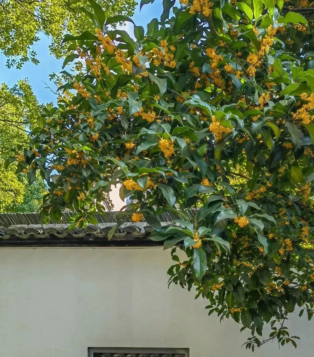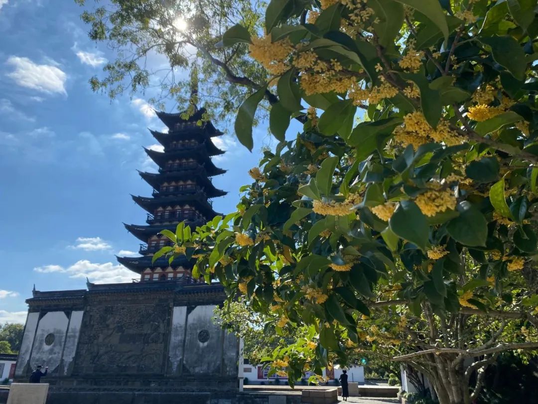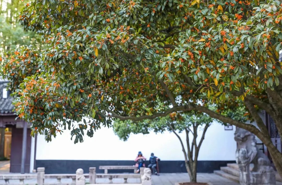 作为松江栽种桂花最密集的园林之一,方塔园内约有350株桂花,大多为银桂、金桂,少数为丹桂,主要分布在塔广场、陈公祠等区域。开花时花团锦簇,沉甸甸地压满枝头,吸引了不少游客拍照打卡。高大繁茂的桂树与旁边白墙黛瓦、楼台亭榭相互映衬,构成一幅美好的秋日画卷。行走在园里,可以嗅到一丝丝沁人心脾的桂花香气。快来置身桂香秋色里,感受大自然的美好!