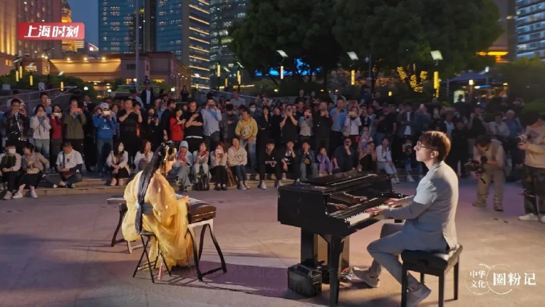这位钢琴演奏者,正是百万音乐UP主(演奏博主)、被中国粉丝昵称为“O叔”的德国钢琴家奥斯卡·罗曼耶卓。今年4月底,他与同为音乐UP主的古筝演奏者“碰碰彭碰彭”在上海繁华的街头,用钢琴和古筝合奏《霍元甲》《曹操》两首曲子,视频一经发布便成为网络爆款。