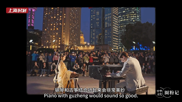 “我们在陆家嘴滨江表演并拍摄,有这么多观众在场,更加激动人心。”奥斯卡说,在美丽而开阔的城市公共空间,当他们开始演奏,相当多的人开始坐下来认真聆听。观众中既有上海市民,也有中外游客,他们的情绪被激情澎湃的琴声和筝音所牵动,一曲弹毕,现场响起热烈的掌声。