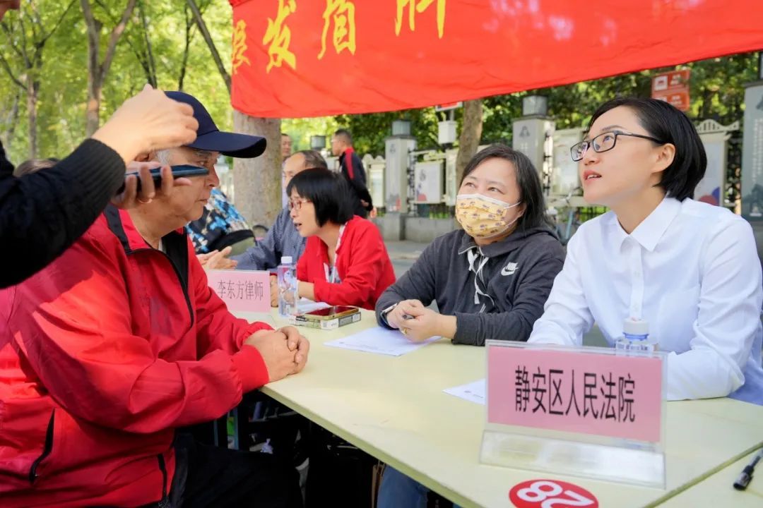 活动现场,“银发盾牌”法律专项社工站特邀上海申浩律师事务所高级合伙人律师、上海市政协委员、上海市律协社会公益和法律援助业务研究委员会主任张玉霞律师,上海市静安区人民法院原老年审判庭庭长林爱华等专业人士共同设摊为广大居民朋友们提供有关婚姻纠纷、遗产继承、自书遗嘱、意定监护、民间借贷和网络诈骗等问题的咨询服务。法律维权零距离,为老年生活撑起一把保护伞。