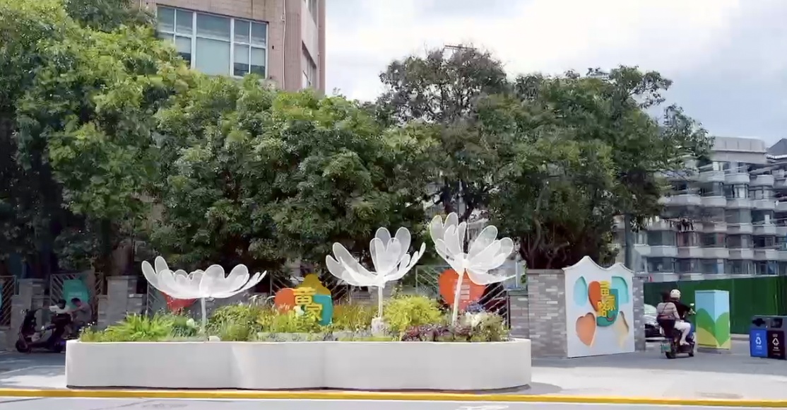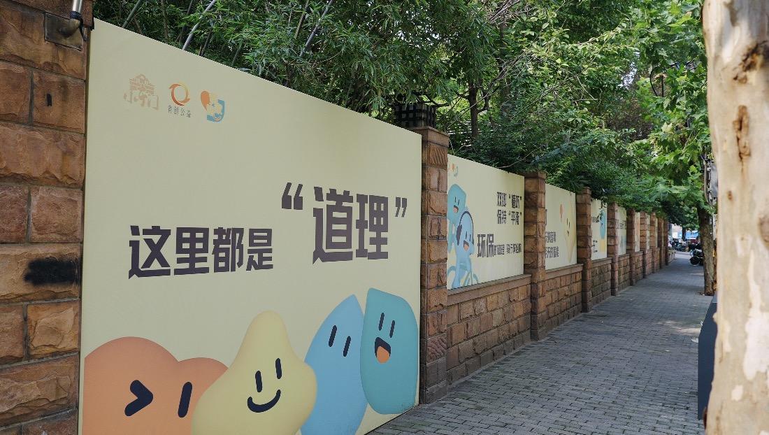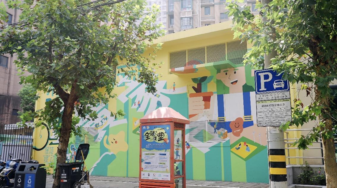 改造后的黄家路步道,周边围墙均已绘制了各种以低碳城市为主题的墙绘,红、绿、黄三种颜色组成的专属Logo从关怀、低碳出发,通过创新活动与服务设计,打造综合的环保可持续街区,使街区更具关怀、关爱的邻里温度。