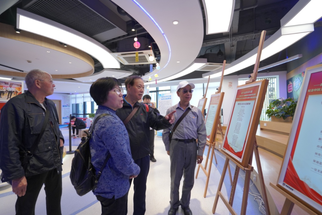 会前,老同志和青少年还兴致勃勃观看了会场外通过电子智融屏展示的普陀区老干部晚晴诗社功能型党支部专题诗词汇编。