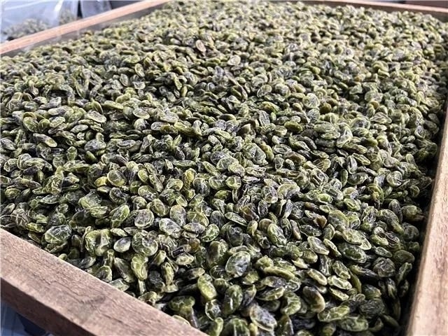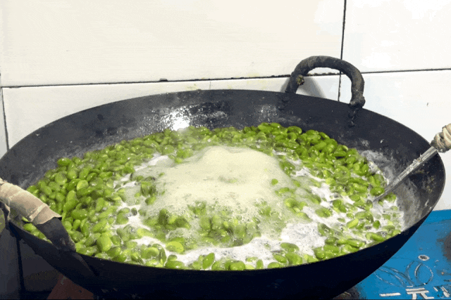 看上去简简单单的豆子,其实需要花费不少时间和精力制作。剥好的毛豆要先洗掉外面的豆衣,再加入糖、盐等调味品一起不停翻炒,直至水分炒干,最后将毛豆平铺在铁筛中,放在煤炉上用小火炙烤12个小时,期间也需要不停翻动。