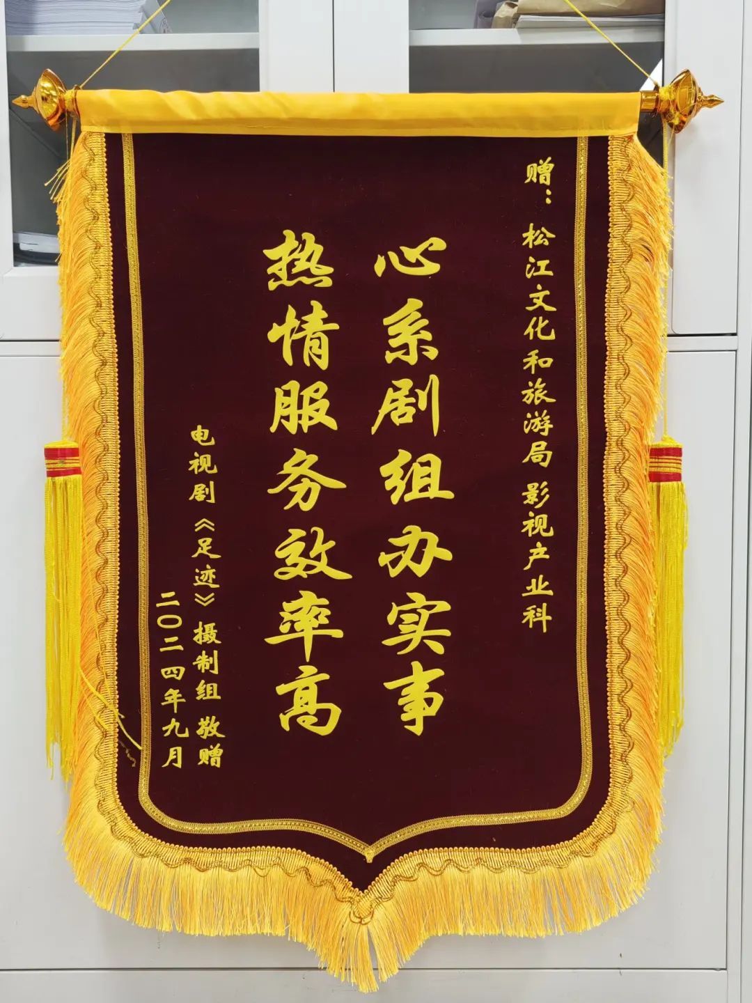 一面锦旗,凝结着一份真情。据了解,9月初,电视剧《足迹》剧组来松江拍摄,因剧情需要拟前往佘山天主教堂进行拍摄。但佘山天主教堂为特殊宗教场所,摄制组几经辗转协调拍摄均遭到拒绝,随后摄制组找到区文旅局寻求帮助。区文旅局积极向区民族宗教办、天主教上海教区等相关部门和场所进行协调,帮助剧组与各方沟通,最终剧组顺利完成拍摄。