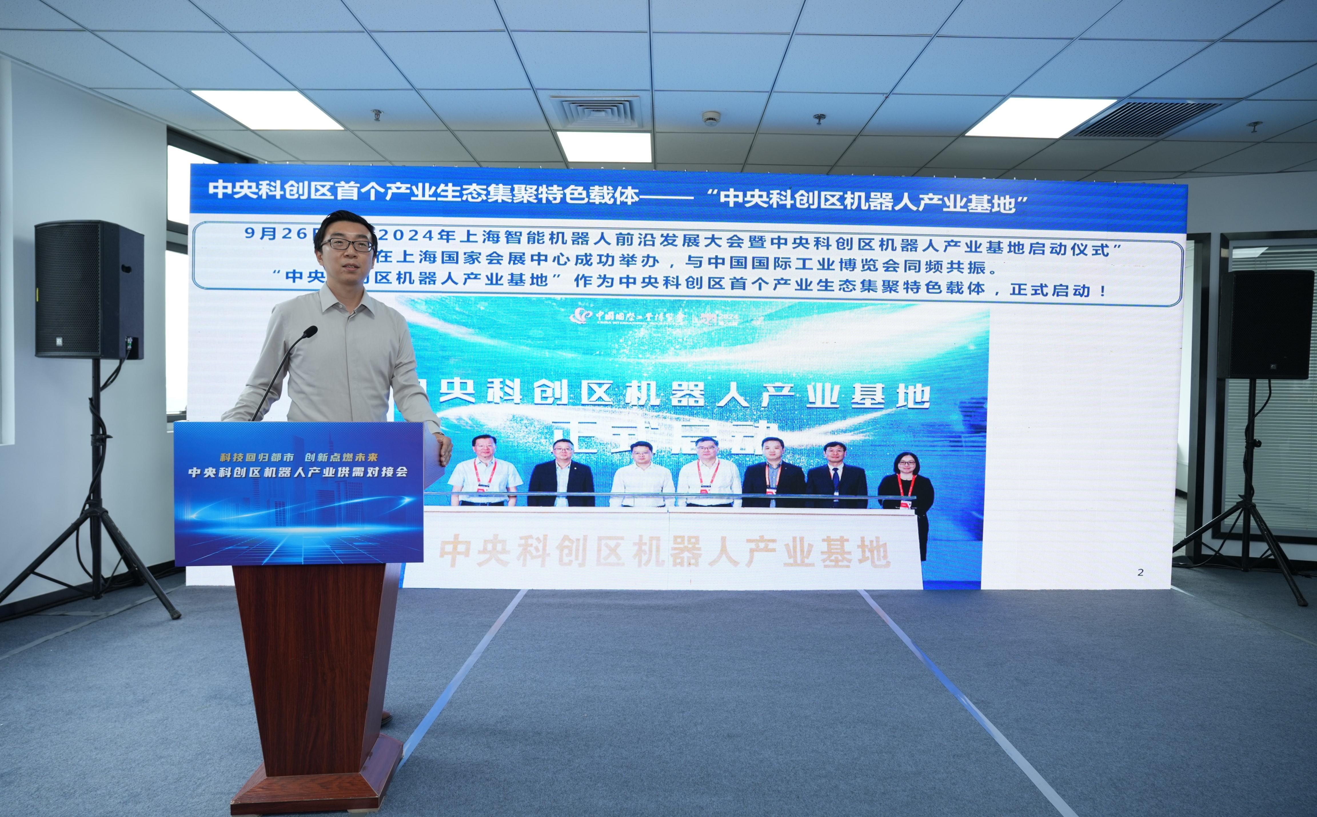 中央科创区机器人产业基地负责人作基地推介,分享基地在技术研发、成果转化、企业孵化、人才培养等方面的全方位服务资源。