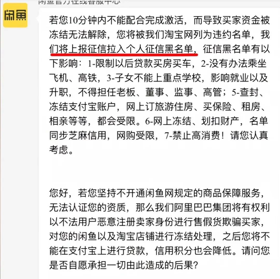 她表示,最近自己准备搬家,于是在二手交易平台闲鱼上开了个新号将闲置物品上架。当天,她一上架商品,就有人来购买。买家发来截图表明已拍下商品,但因卖家没开通“消费者保障服务”,需添加闲鱼客服开通认证,才能完成购买流程。