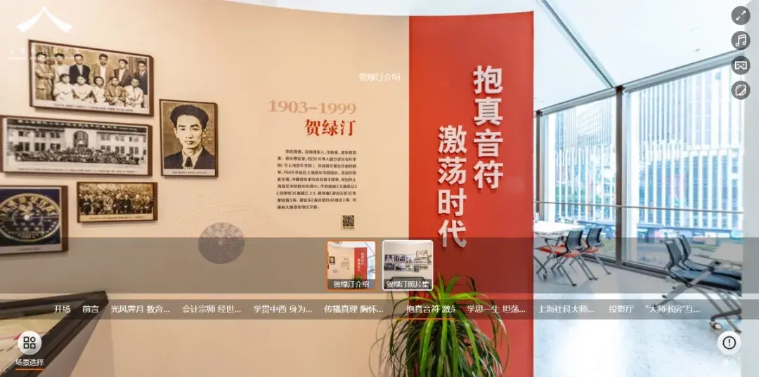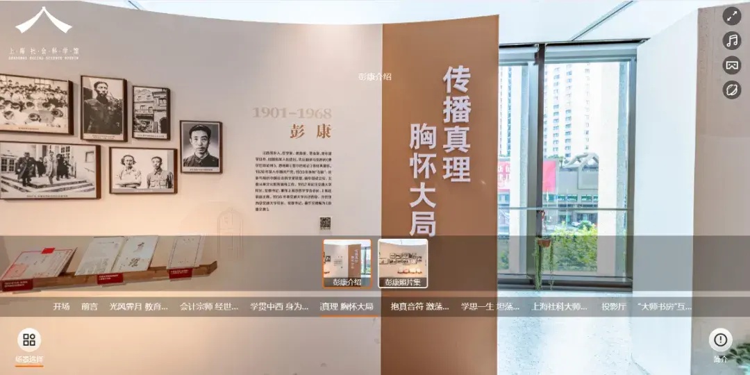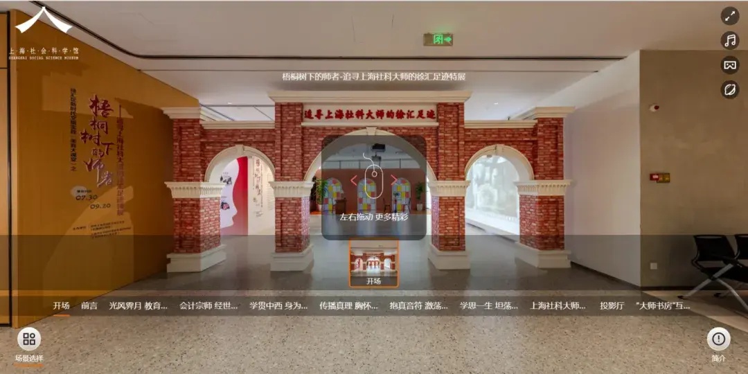 扫描识别下方二维码或点击https://www.720yun.com/vr/72bj55ma5k3,即可线上观看展览全部场景,沉浸式追寻上海社科大师的徐汇足迹!
