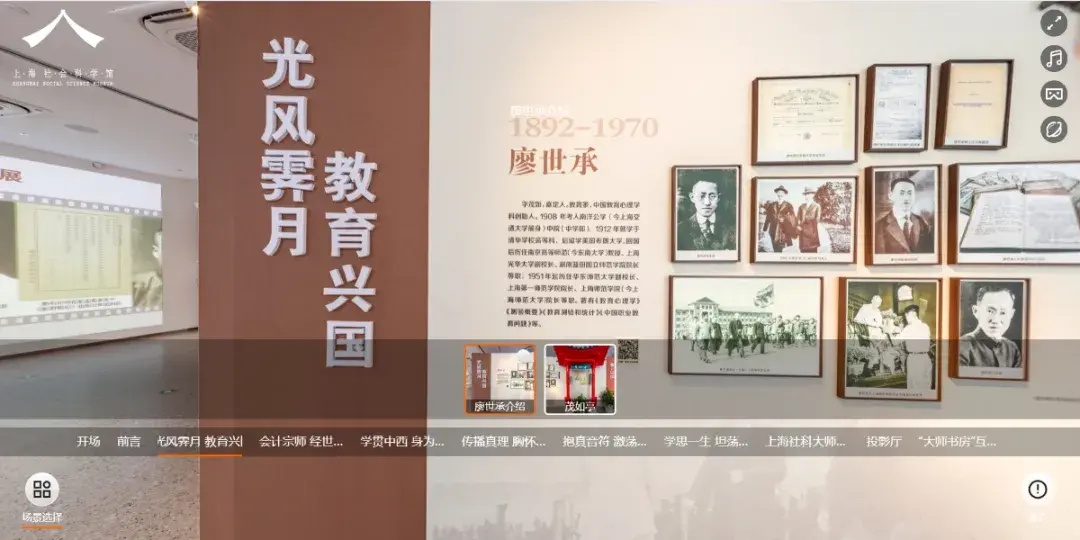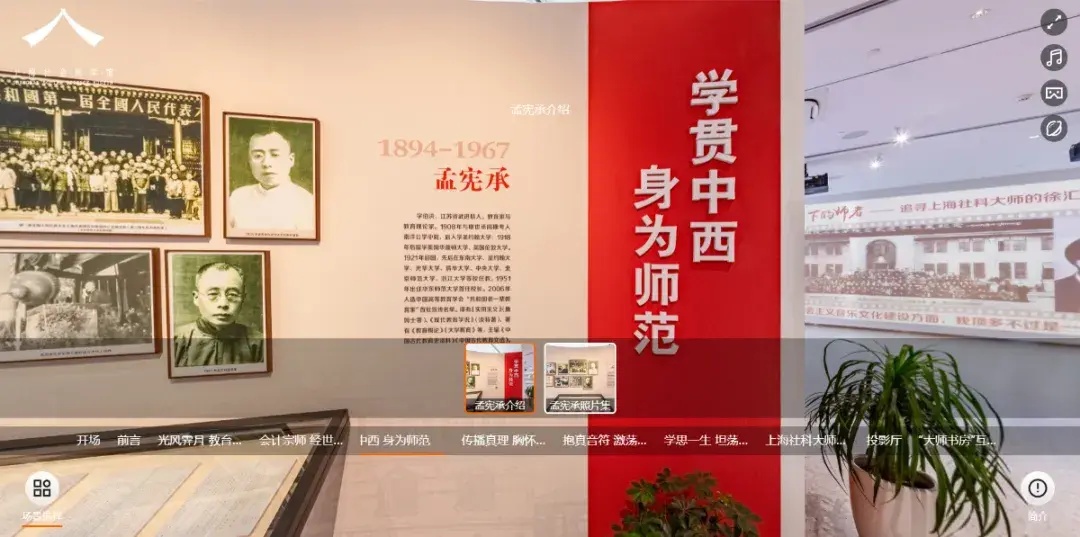 本次特展展出廖世承、潘序伦、孟宪承、彭康、贺绿汀、王元化等六位社科大师的生平简介、影像资料、学术成就摘编、著作文集、手稿信件(复制件)、孤本实物(复制件)、大师居住地新旧照片对比等物件材料,希望藉此让更多的市民群众近距离感受大师对中国哲学与社会科学发展等方面作出的杰出贡献。