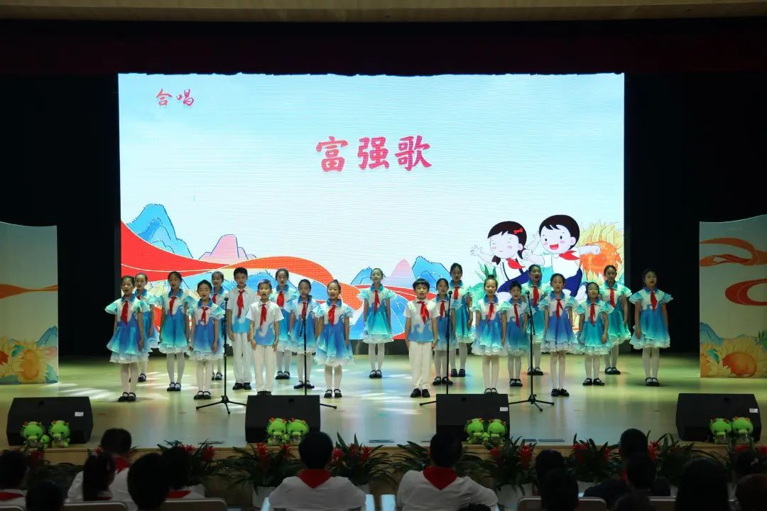 最后,全体少先队员合唱《富强歌》,铿锵激昂的歌声表达了黄浦少年以实际行动践行“请党放心、强国有我”的铮铮誓言。